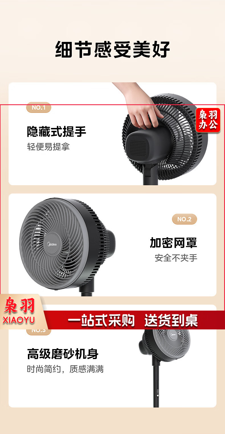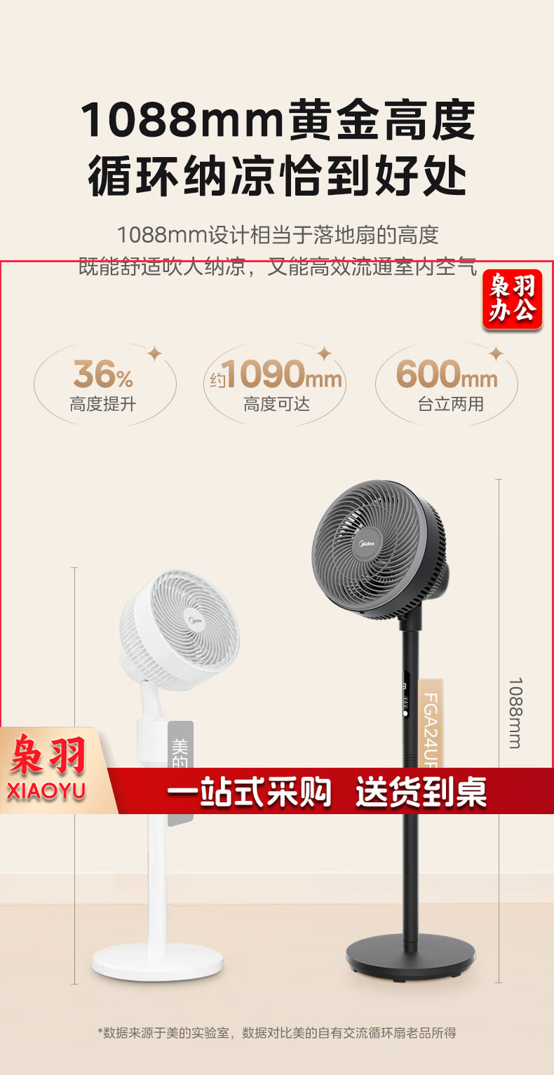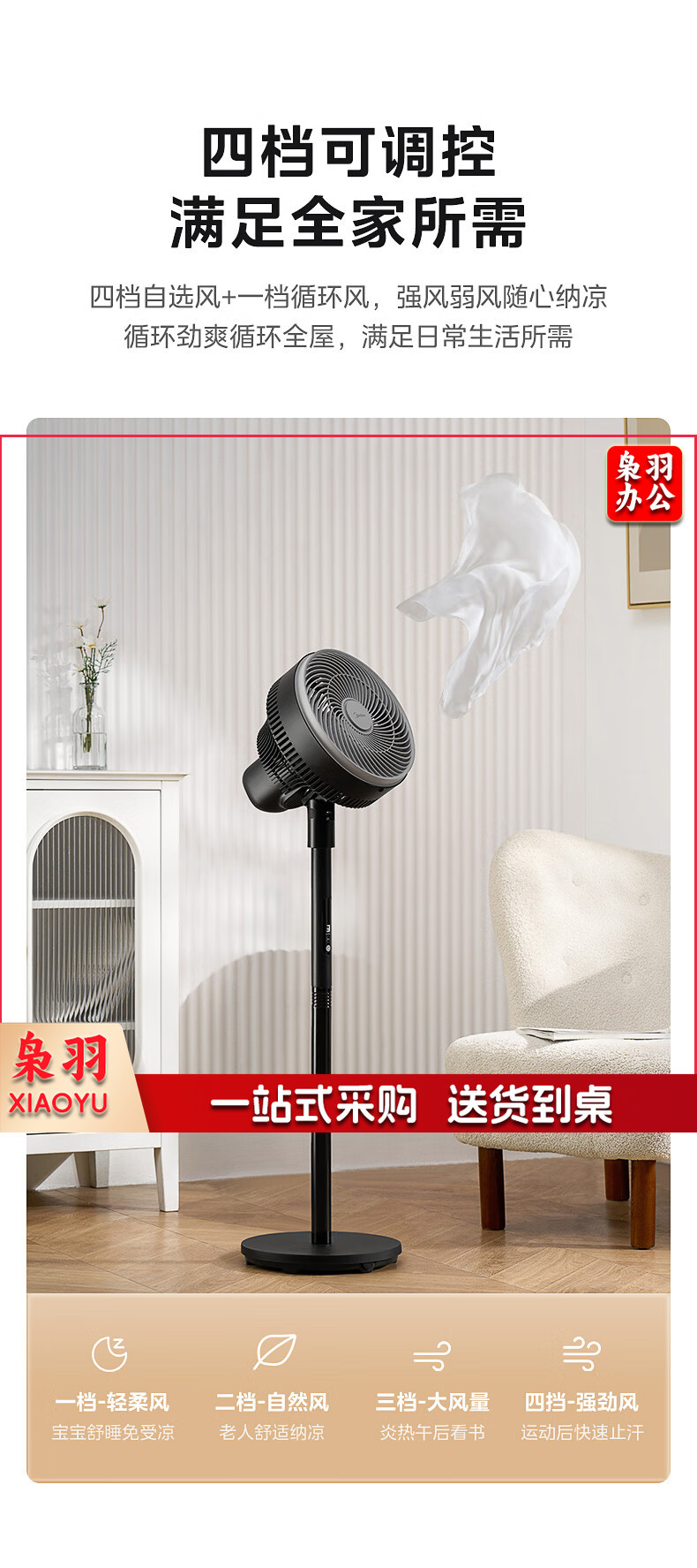 美的(Midea) 空气循环扇台地遥控摇头 大风量节能 FGA24UR 俯仰轻音自然风对流家用 黑色