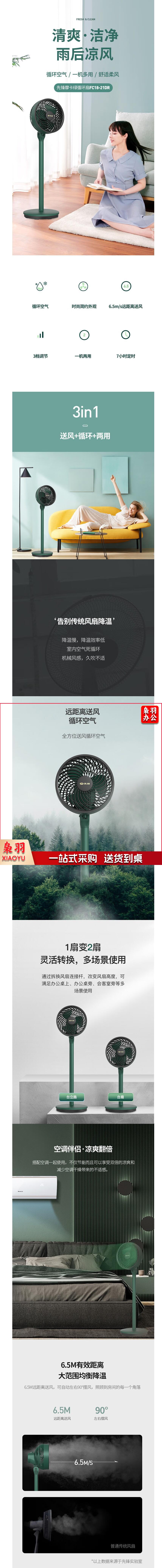 先锋(SINGFUN)空气循环扇直流变频遥控电风扇家用摇头电扇循环对流风扇 FC18-21DR