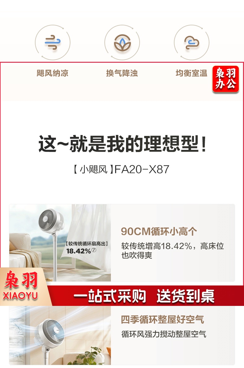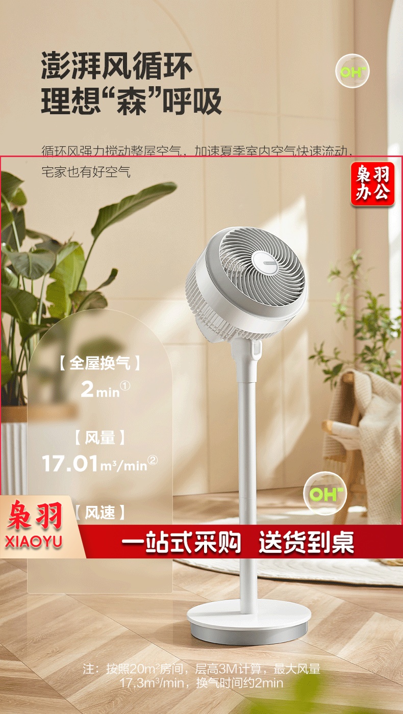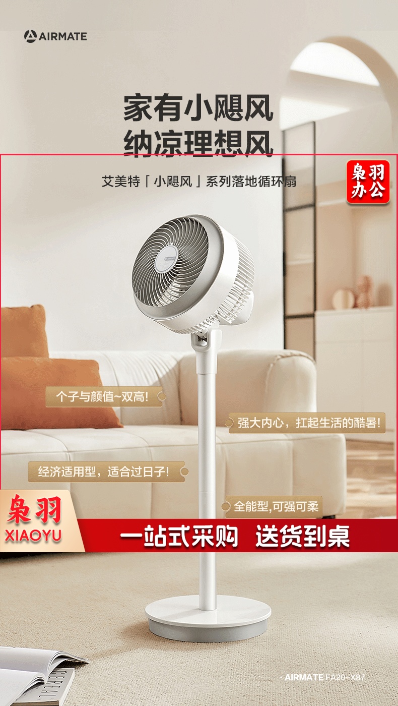 艾美特(AIRMATE)【涡轮换气】空气循环扇小飓风家用节能电风扇台立式桌面落地扇3D摆头纳凉换大风量风扇 FA20-X87