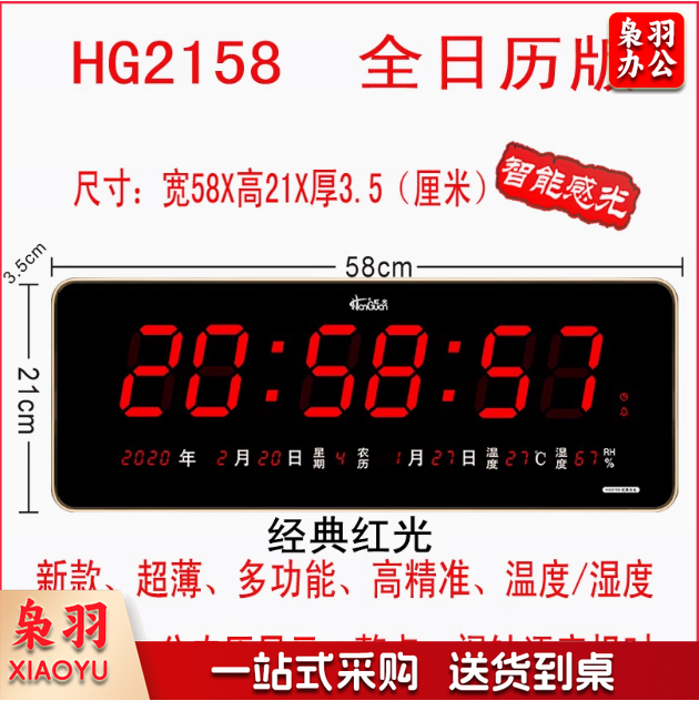 万年历电子钟家用客厅长方形挂墙时钟虹泰led大屏数字夜光闹钟表