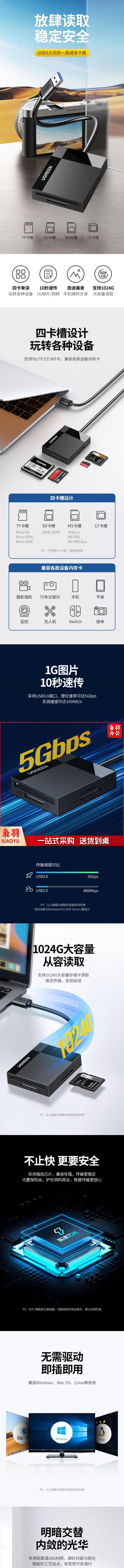 绿联 USB3.0高速读卡器 多功能四合一读卡器30231