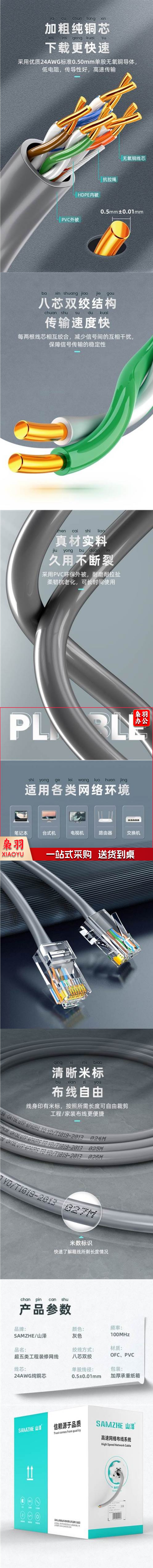 山泽(SAMZHE)SZ-5305A 超五类网线【工程版0.5mm无氧铜线芯】CAT5e类非屏蔽网线 家装网络布线监控专用305米
