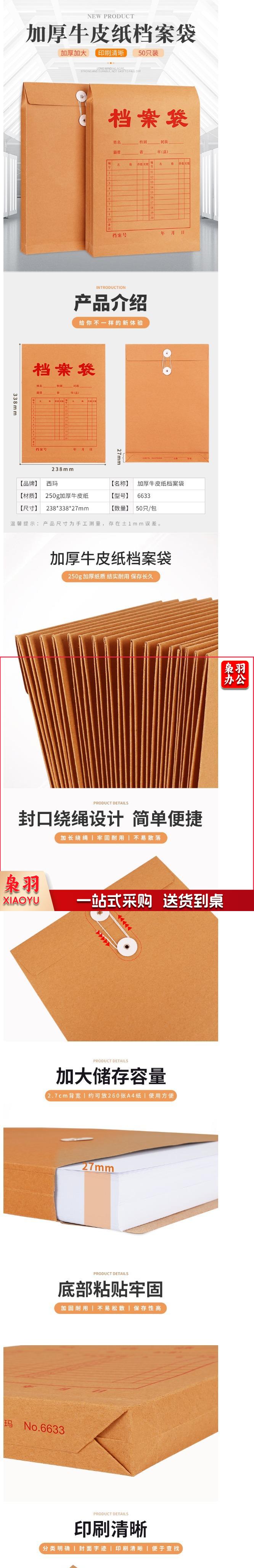 西玛(SIMAA)50只250g加厚牛皮纸档案袋 文件袋资料袋/投标档案袋 6633