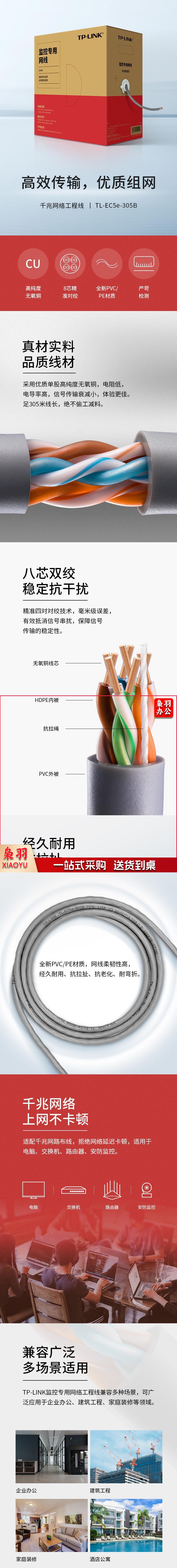 TP-LINK 超五类性能千兆网线 纯铜双绞线 家装网络监控布线305米箱线EC5e-305B