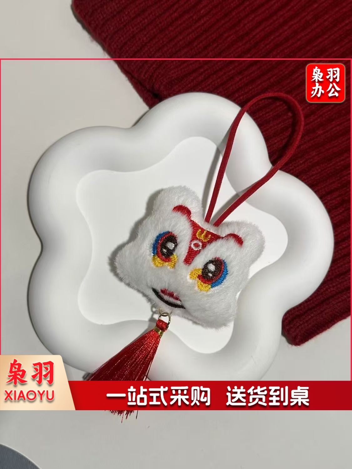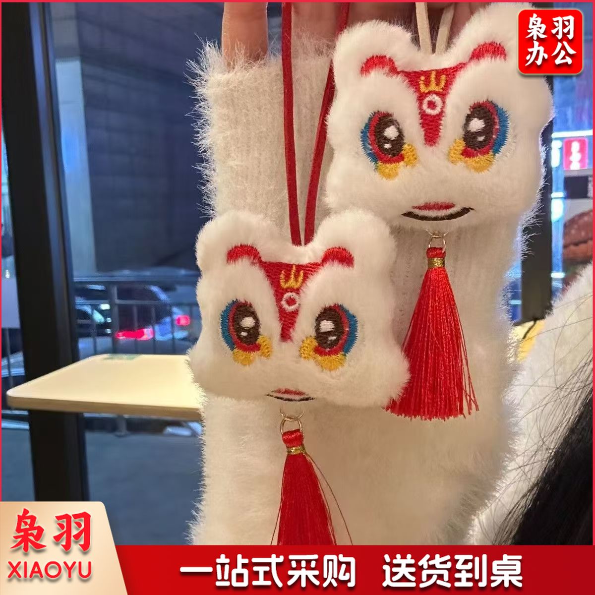 中国风醒狮挂件可爱毛绒新年新年喜庆好运挂饰米绳加红绳2个装