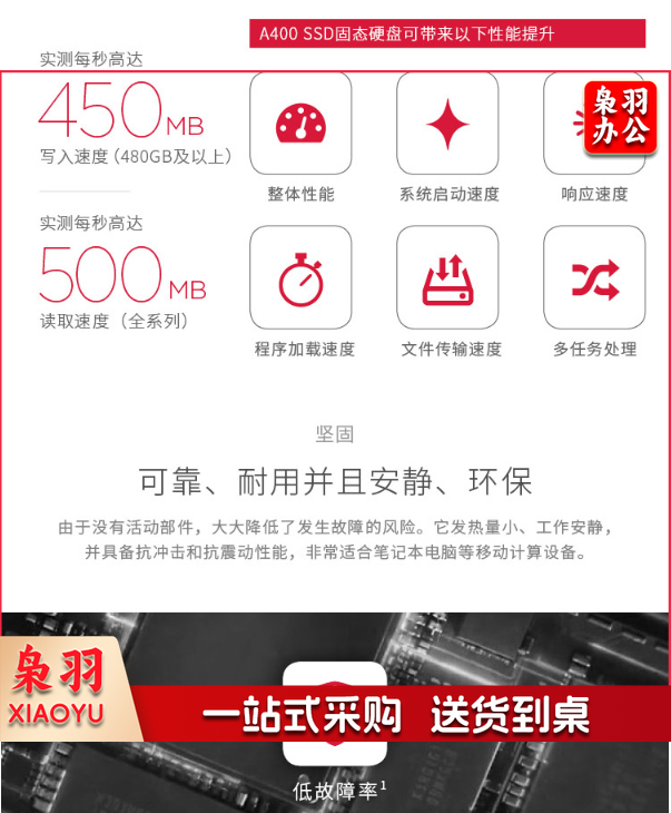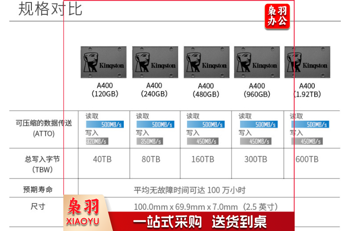 金士顿(Kingston) 480GB SSD固态硬盘 SATA3.0接口 A400系列 读速高达500MB/s