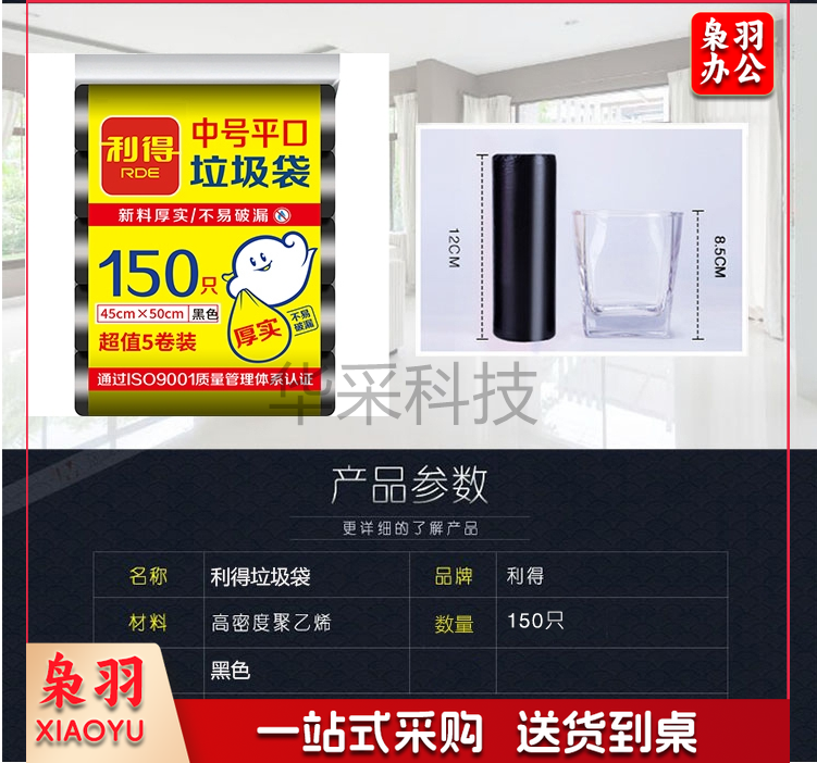 中号垃圾袋袋子150只家用实惠5卷装45*50cm垃圾分类黑色