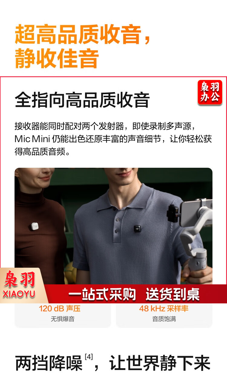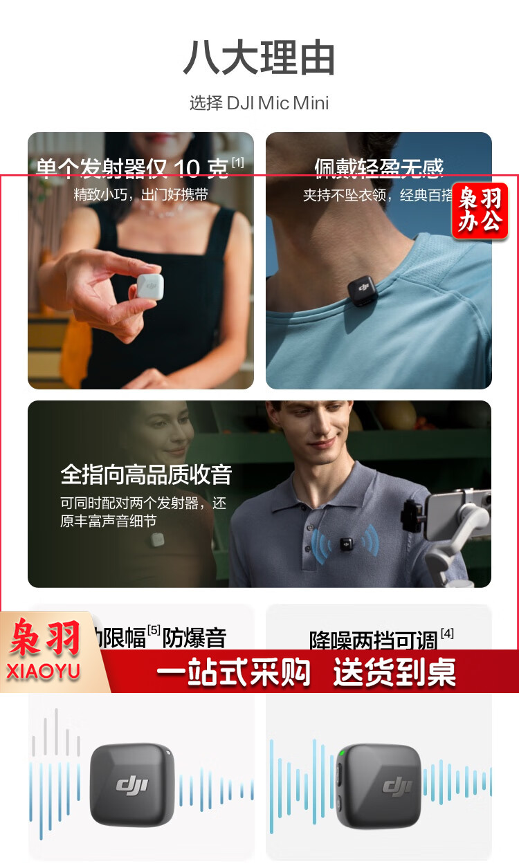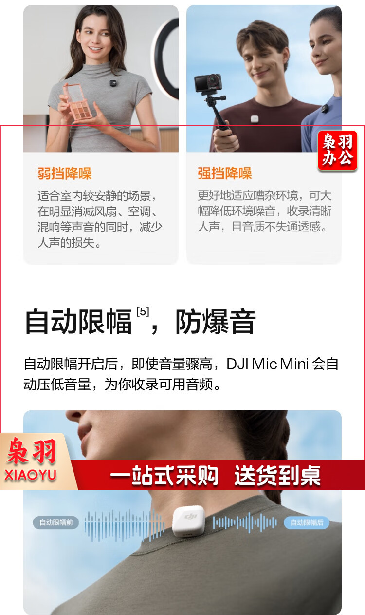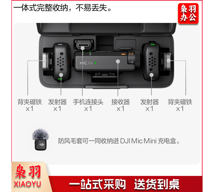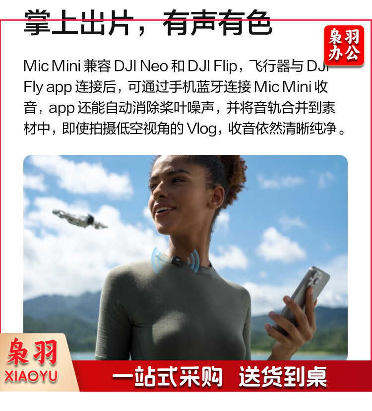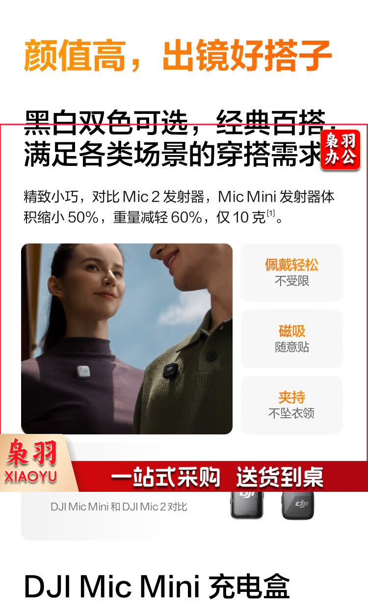 大疆 DJI Mic Mini (一拖二含充电盒)迷你无线高品音质降噪领夹麦克风户外采访直播vlog手机相机收音麦