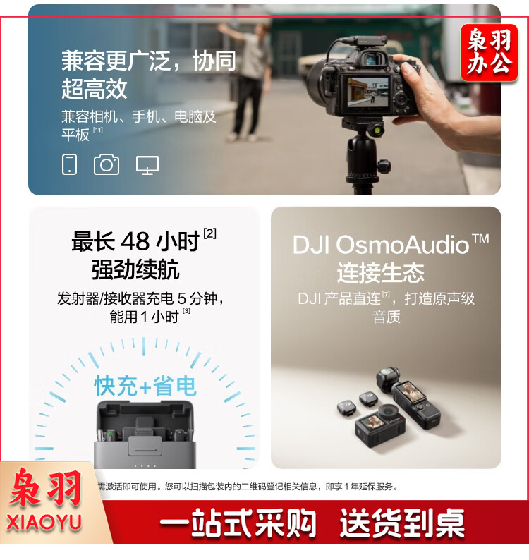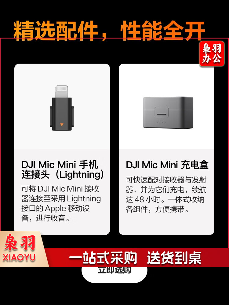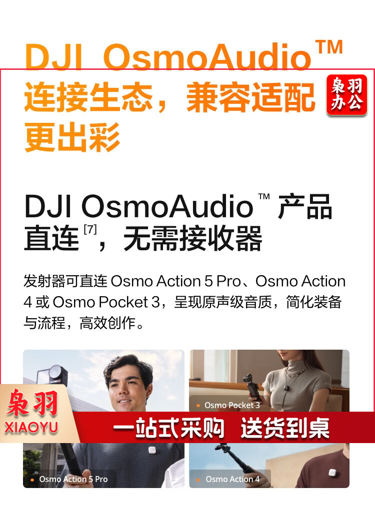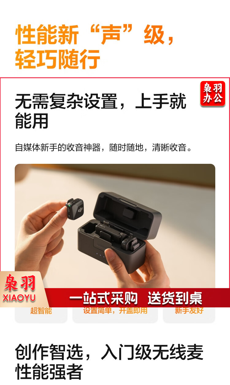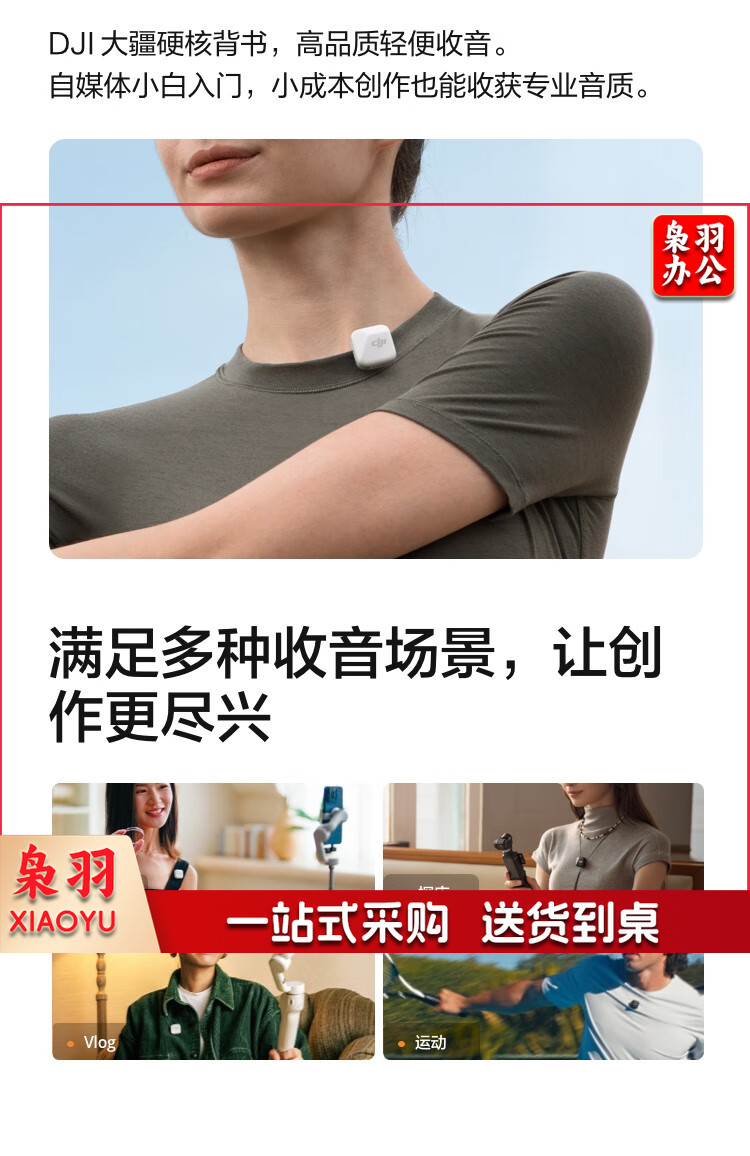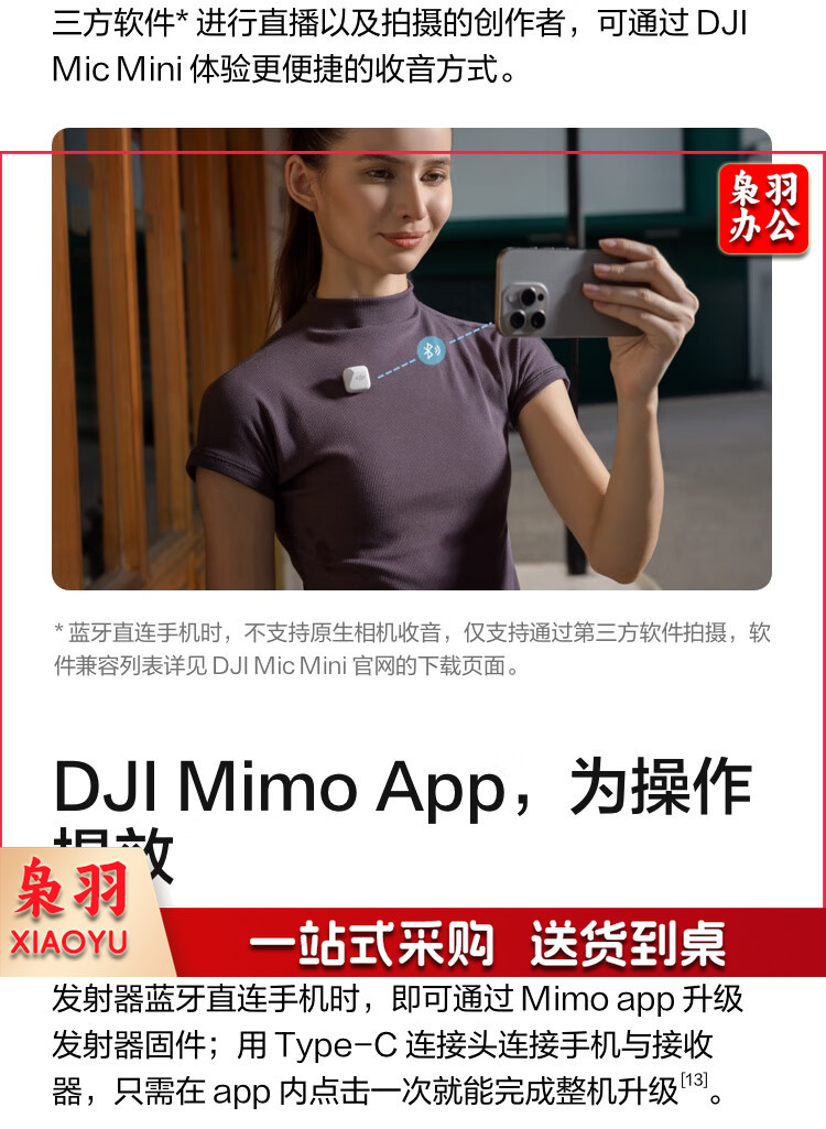 大疆 DJI Mic Mini (一拖二含充电盒)迷你无线高品音质降噪领夹麦克风户外采访直播vlog手机相机收音麦