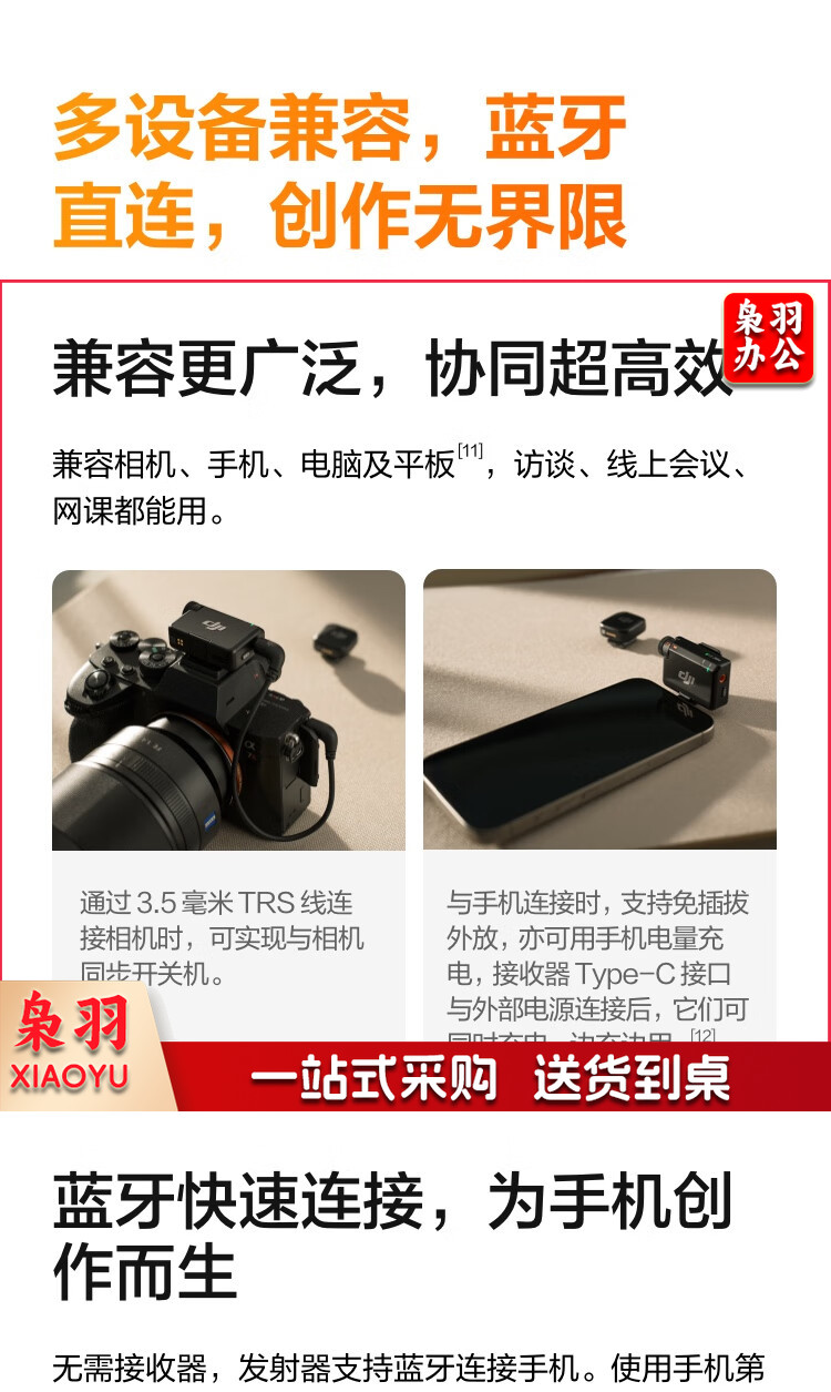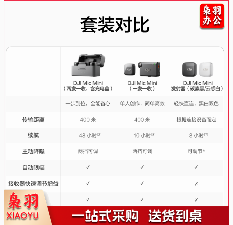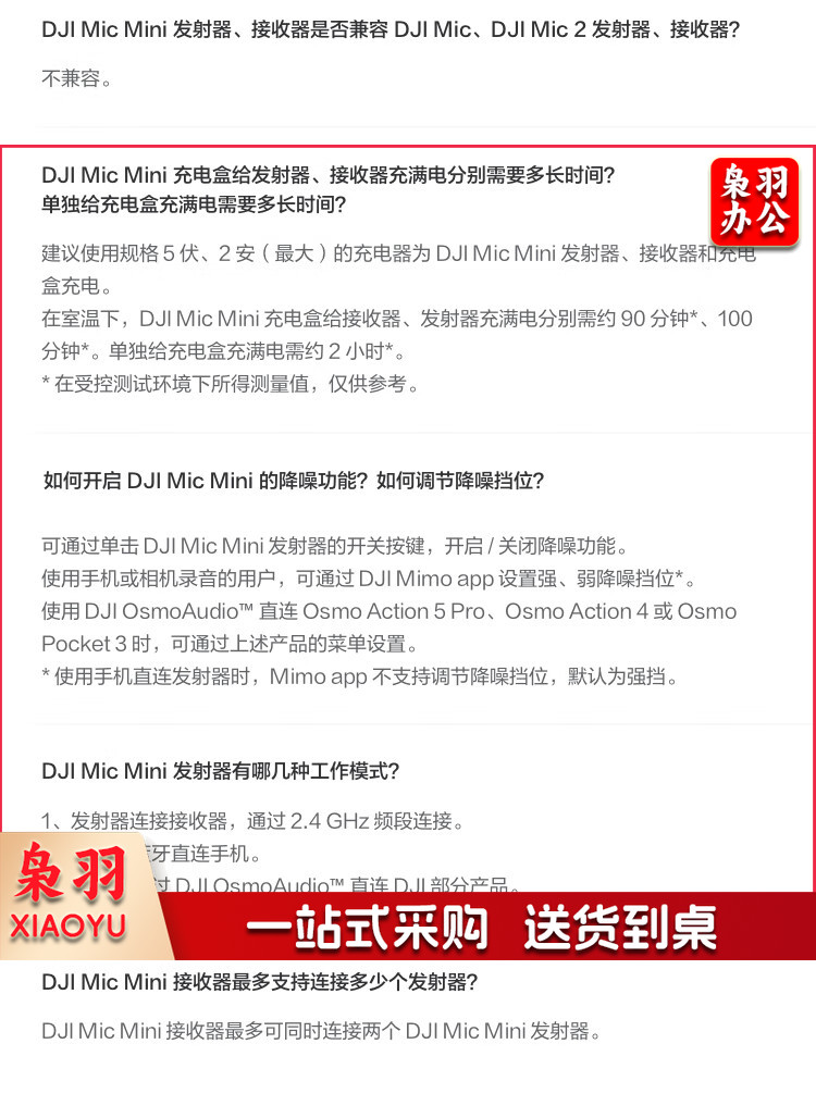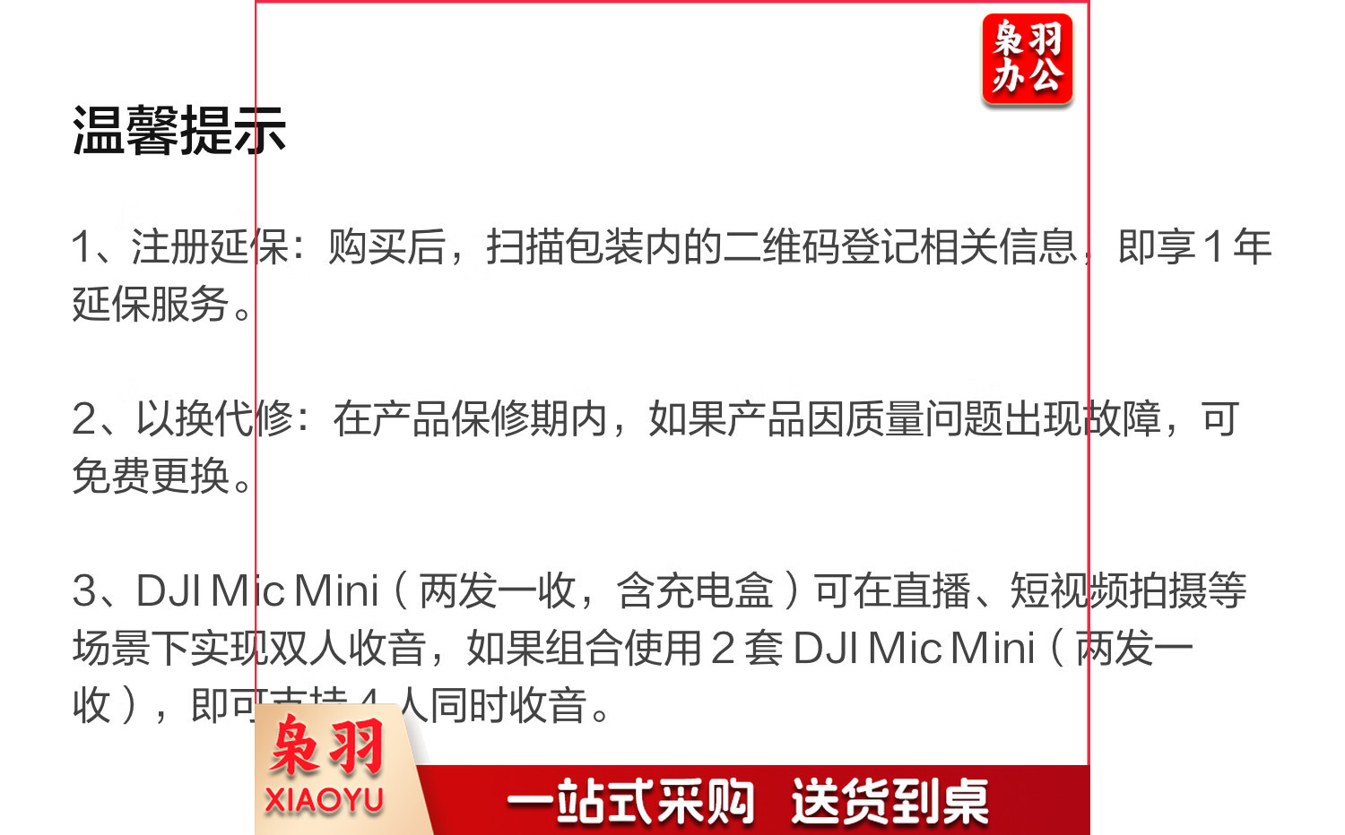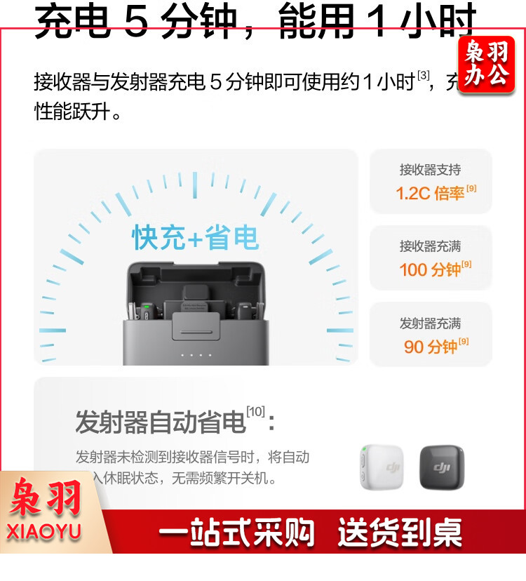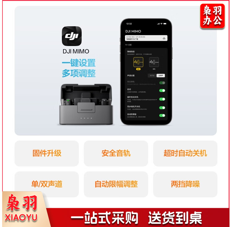 大疆 DJI Mic Mini (一拖二含充电盒)迷你无线高品音质降噪领夹麦克风户外采访直播vlog手机相机收音麦