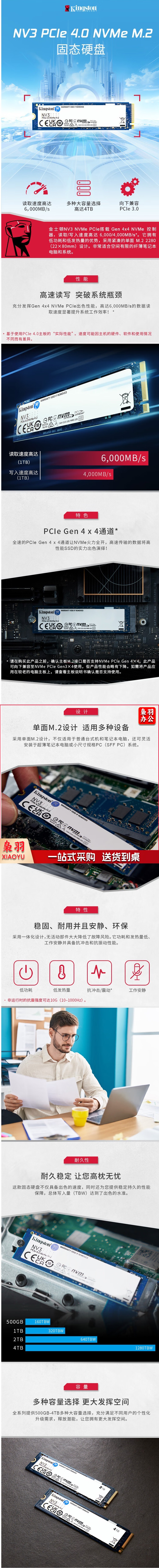 金士顿(Kingston) 1TB SSD固态硬盘 M.2接口(NVMe协议) NV3系列