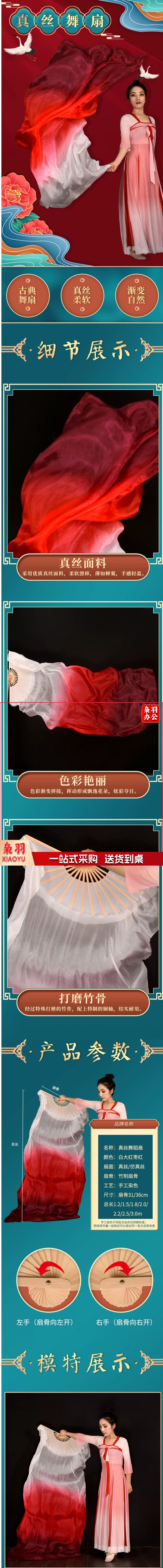 真丝舞蹈扇子缠舞蹈扇酒红万疆跳舞扇古典舞总长1.2米 31厘米扇骨 右手