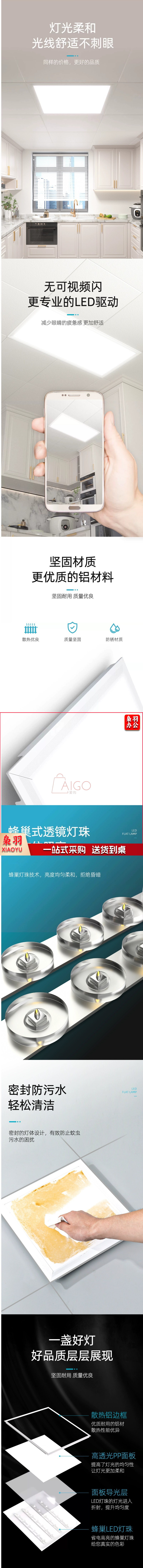 集成吊顶LED灯厨房卫生间吸顶灯平板嵌入式面板灯铝扣板灯300*600