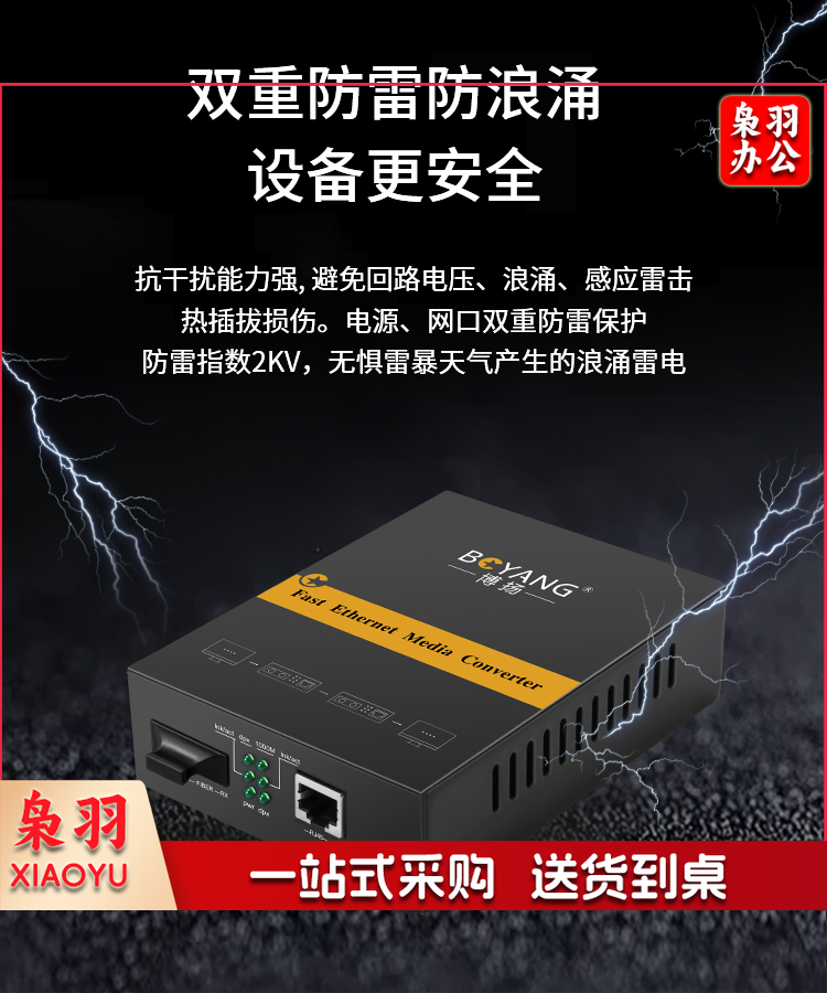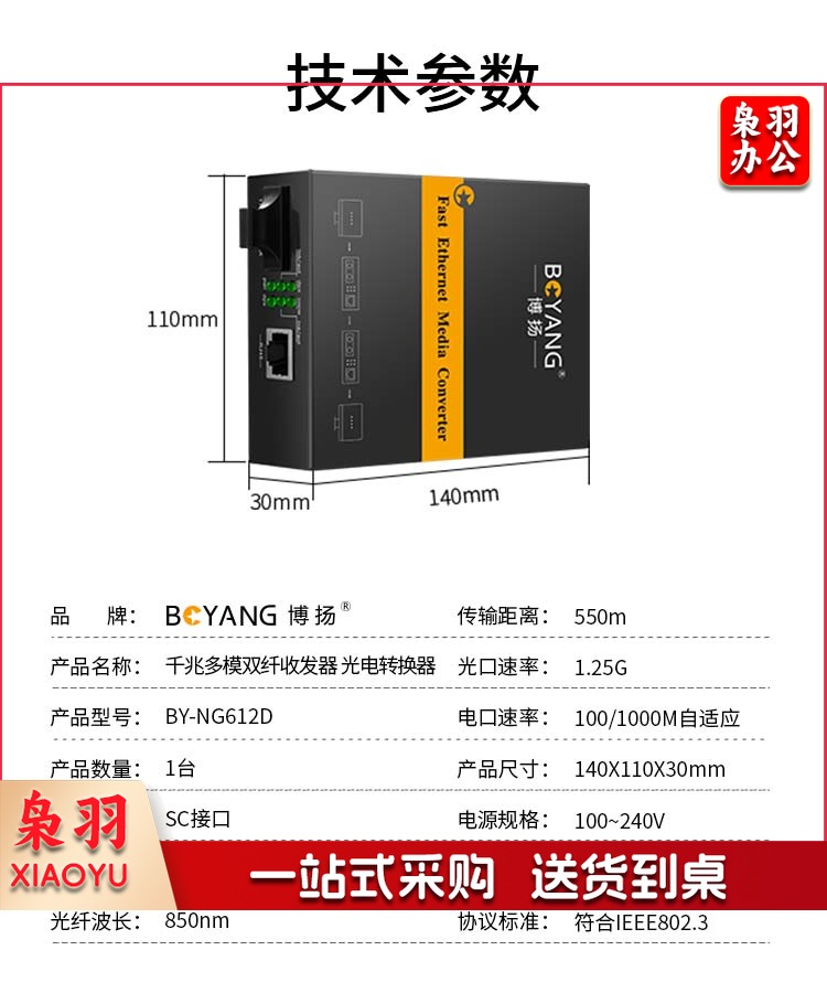 博扬(BOYANG)BY-NG612D 千兆双纤多模光纤收发器 光电转换器 防雷SC接口 550m内置电源 一台