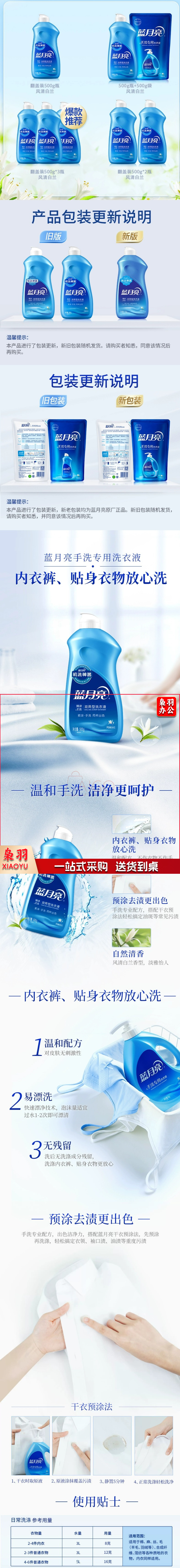 蓝月亮洗衣液学生宿舍小瓶手洗专用500g内衣内裤清洗液风清白兰香