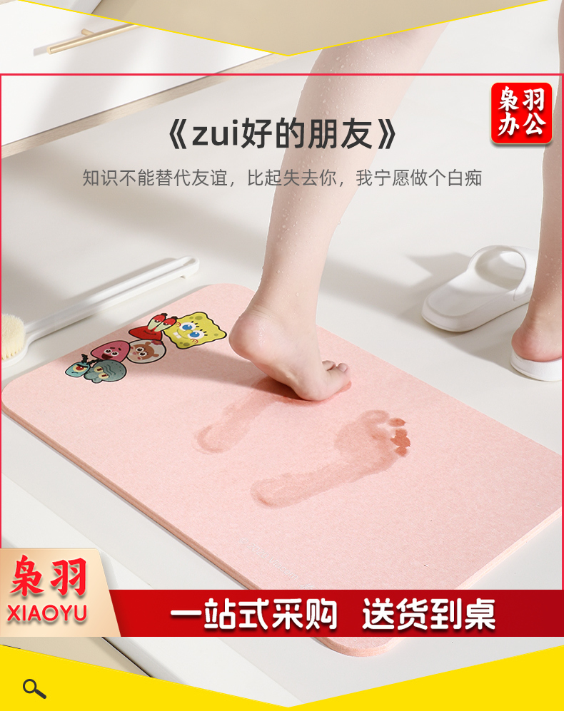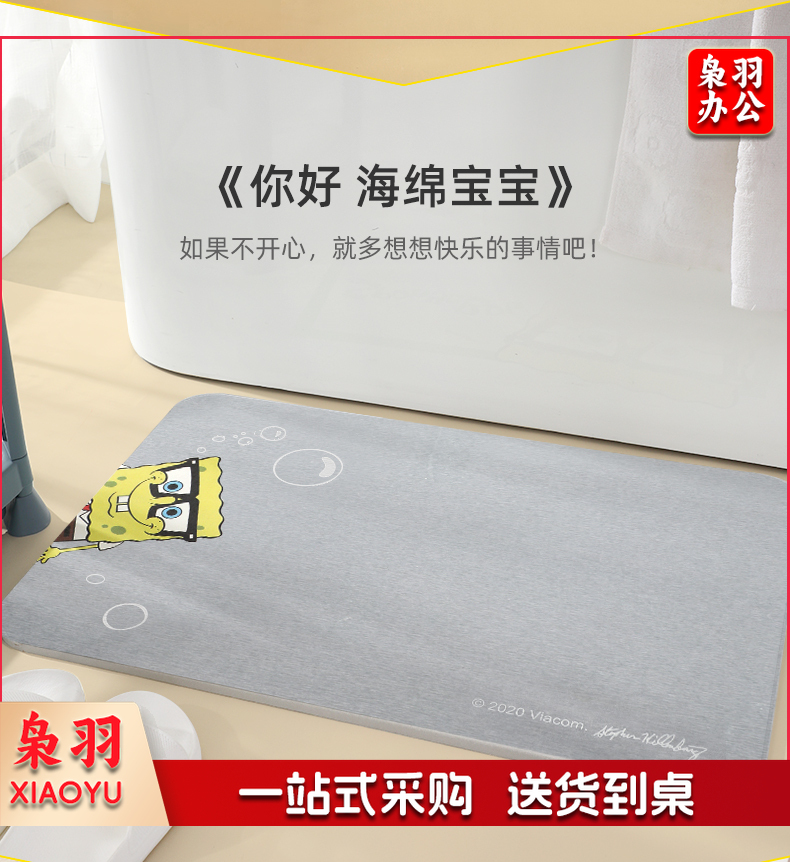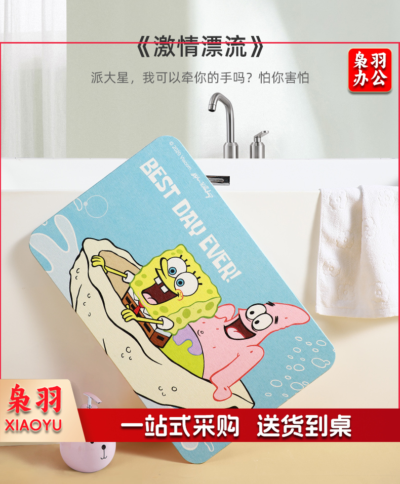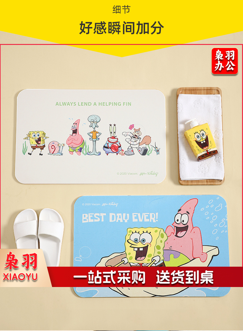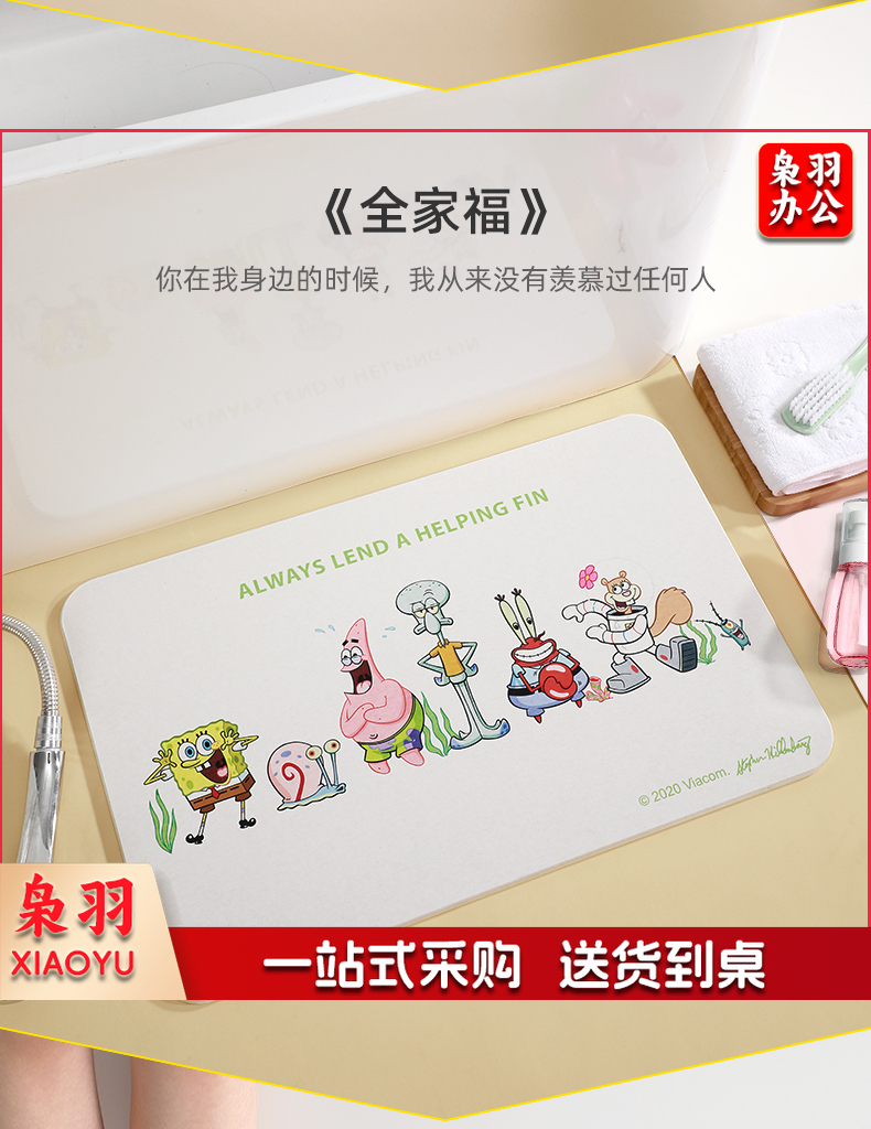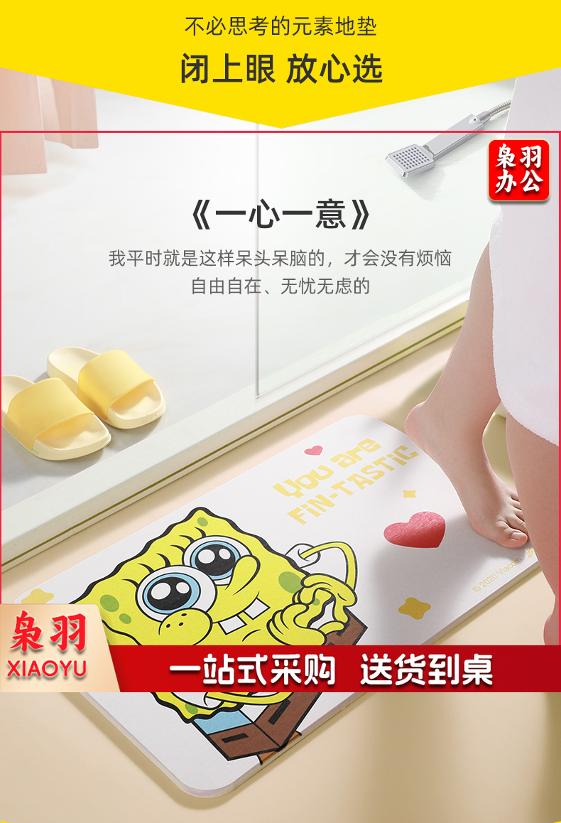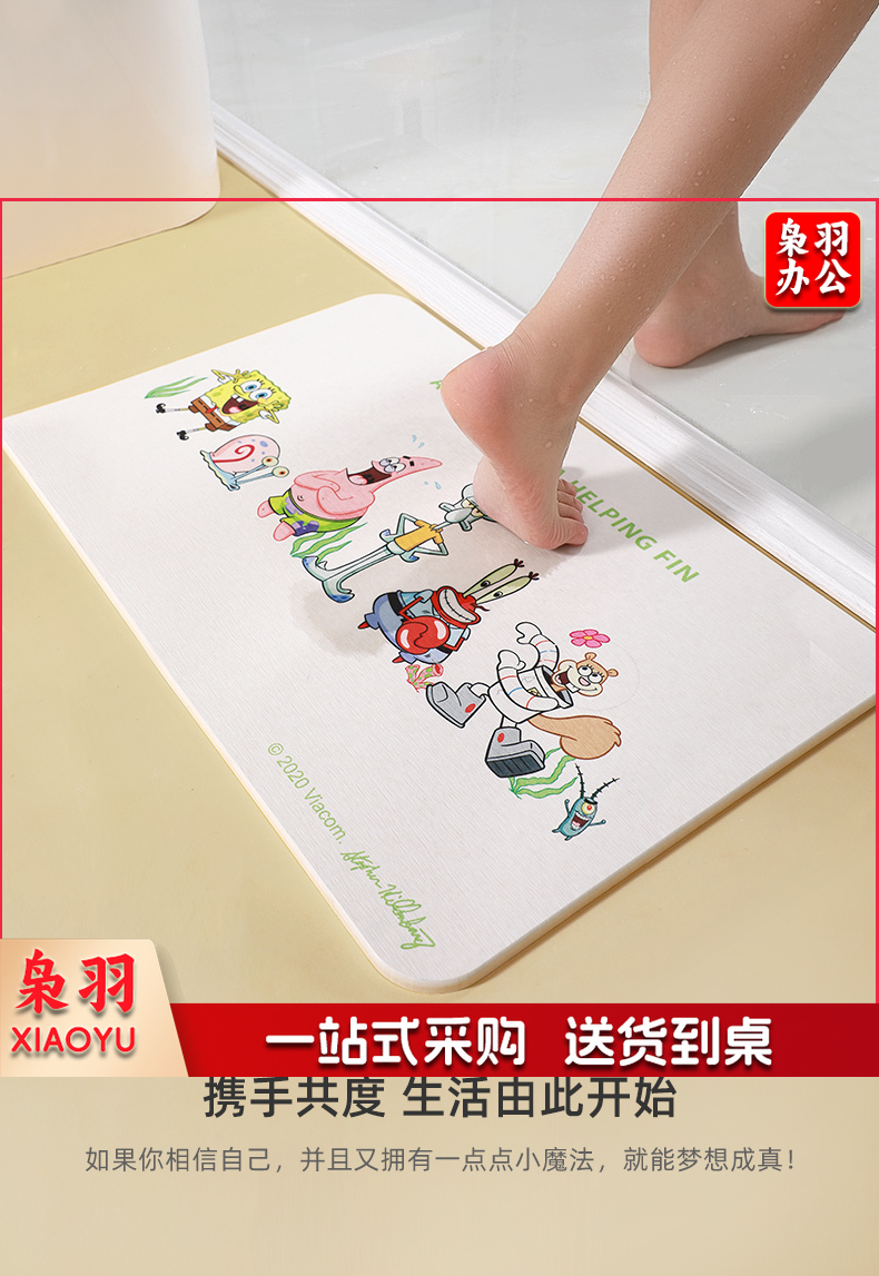 海绵宝宝硅藻泥吸水地垫浴室卫生间门口脚垫家用速干防滑垫子卡通-激情漂流
