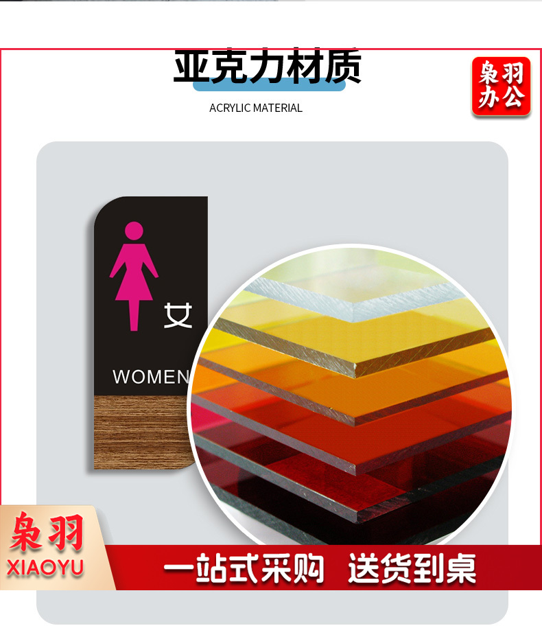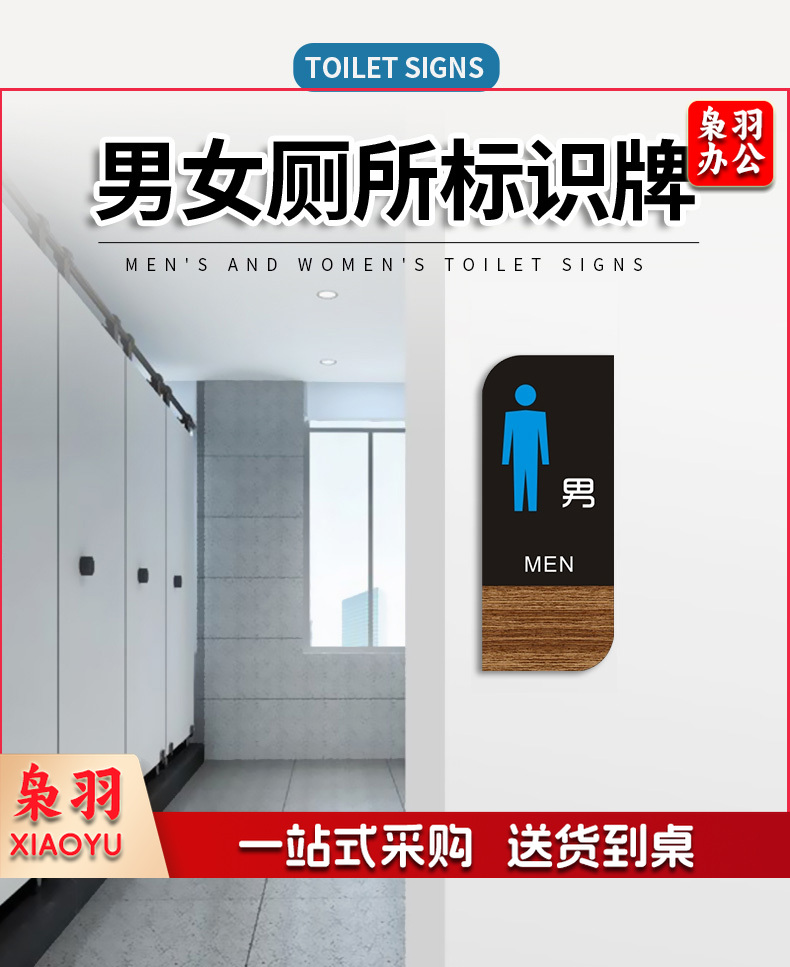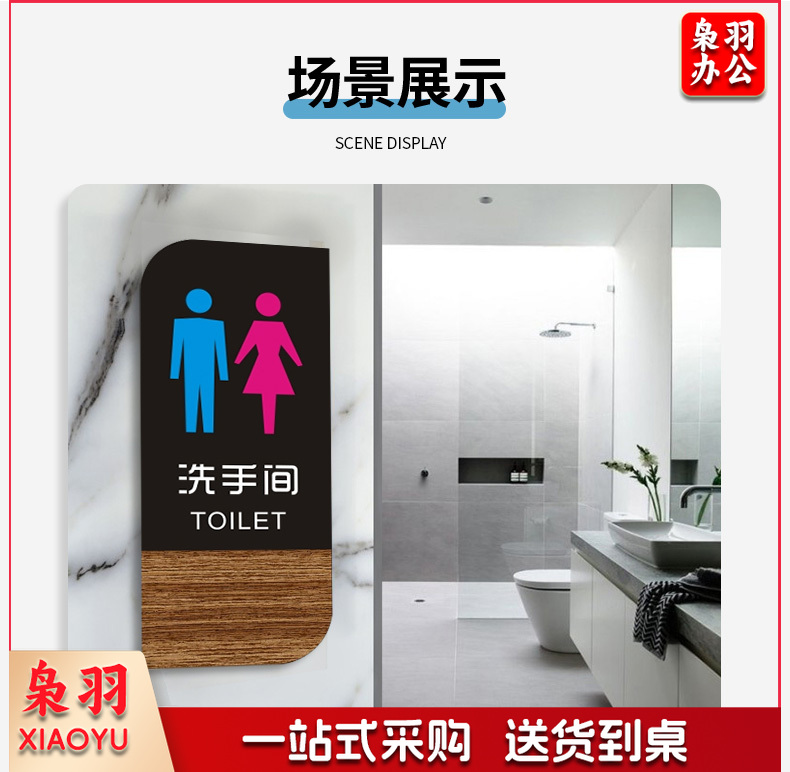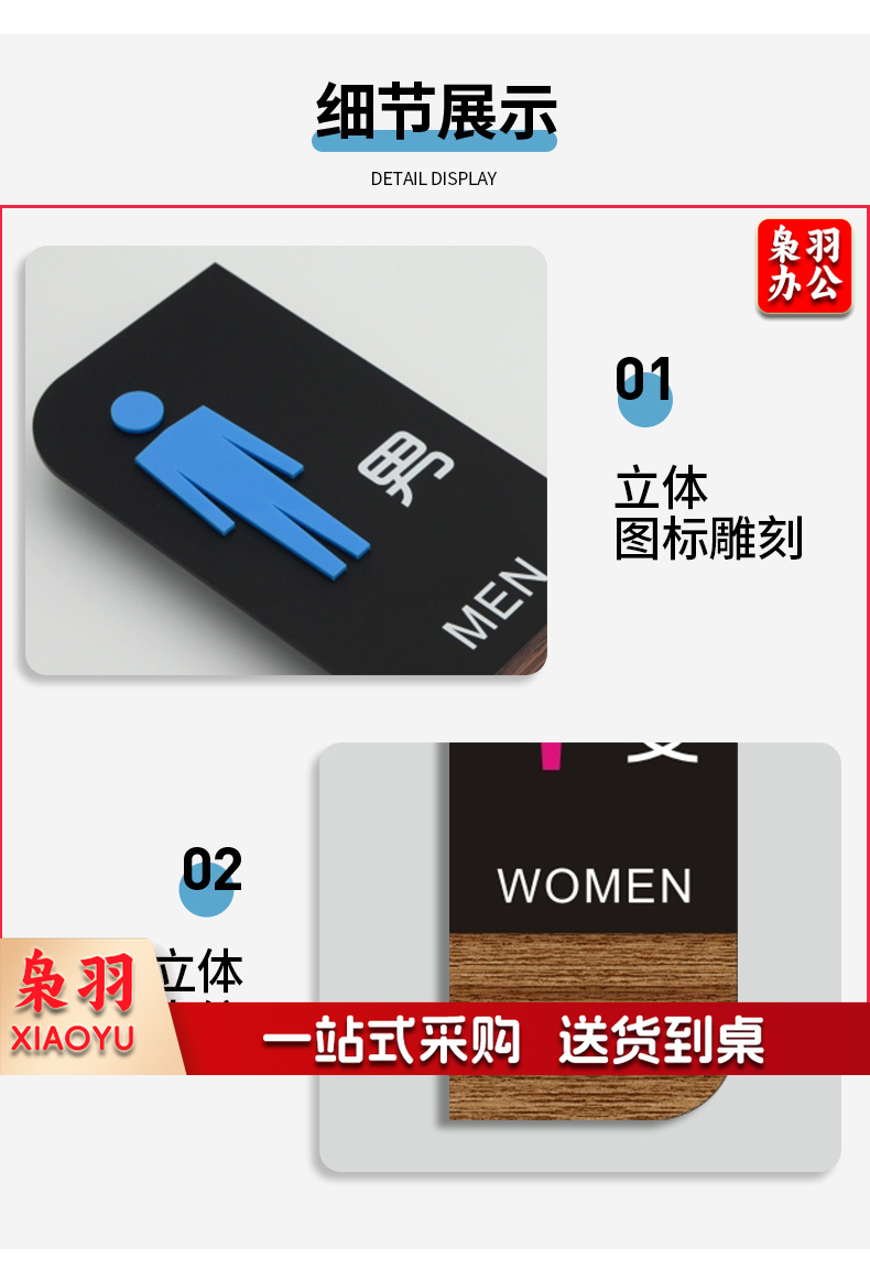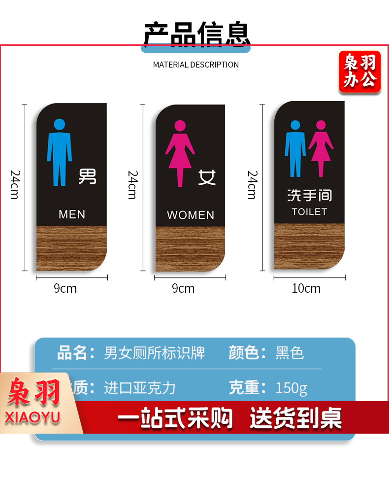 自粘亚克力背胶男女卫生间标识牌洗手间指示牌厕所WC门牌 2块装24*9cm
