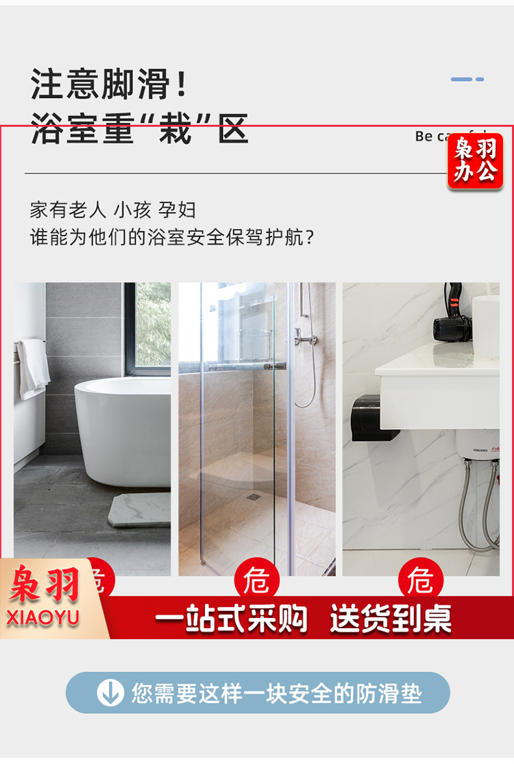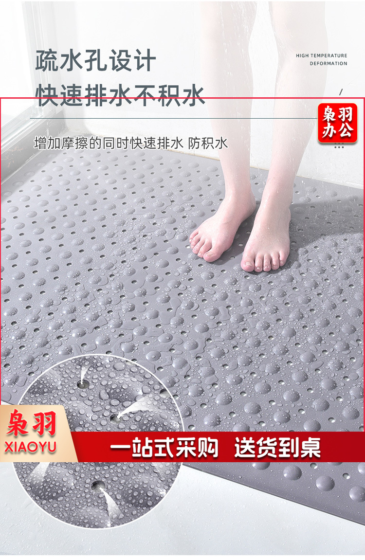 浴室防滑垫卫生间淋浴房隔水地垫酒店厕所卫浴洗澡脚垫灰色60*90cm