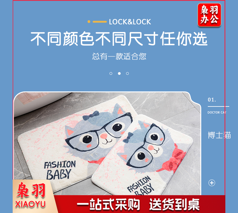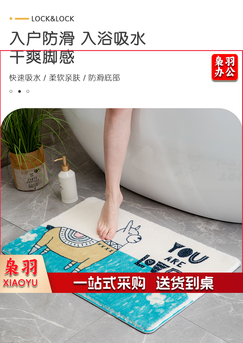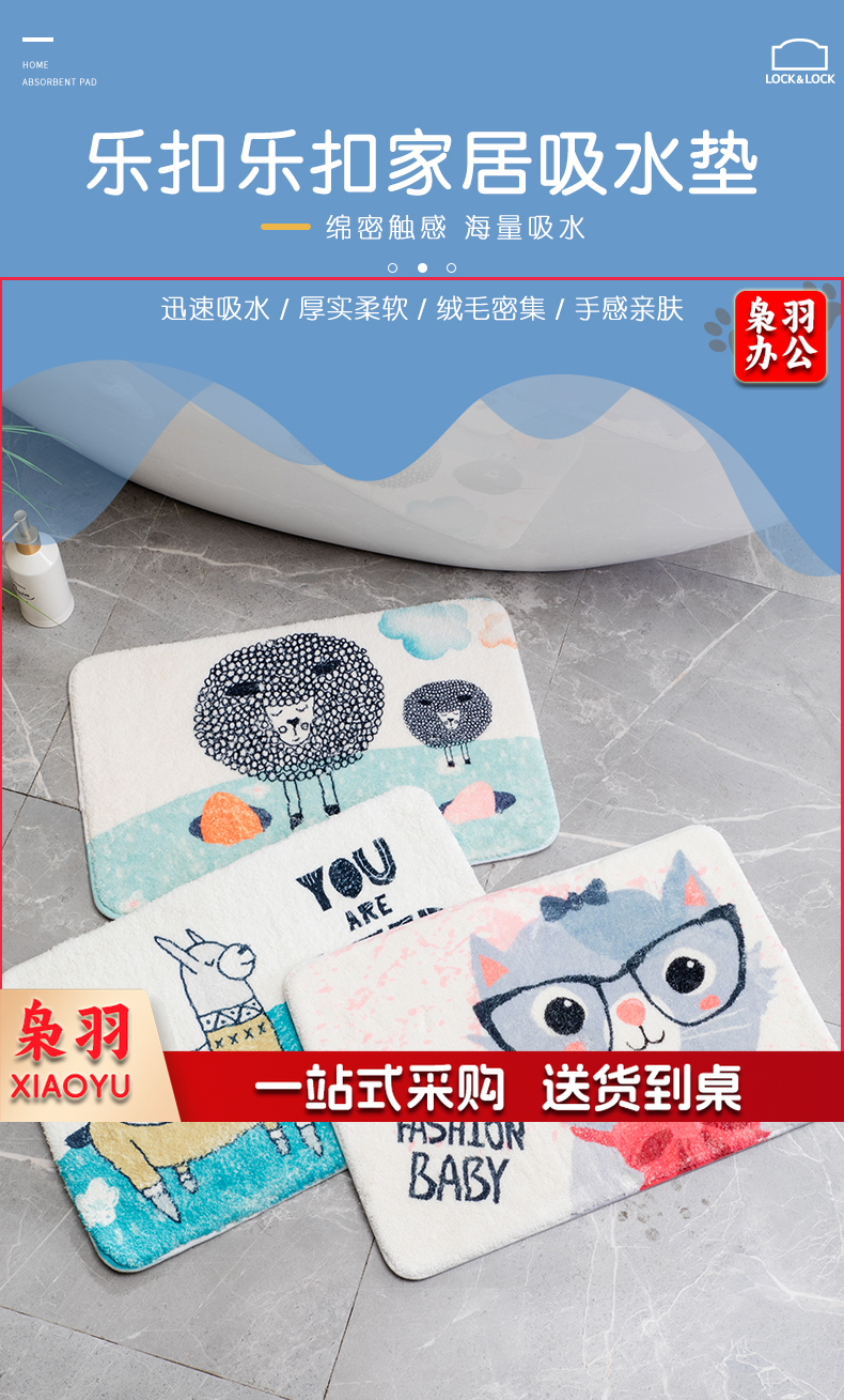乐扣乐扣 吸水地垫门垫卫浴速干浴室防滑垫进门家用脚垫门口卫生间垫子 40*60cm