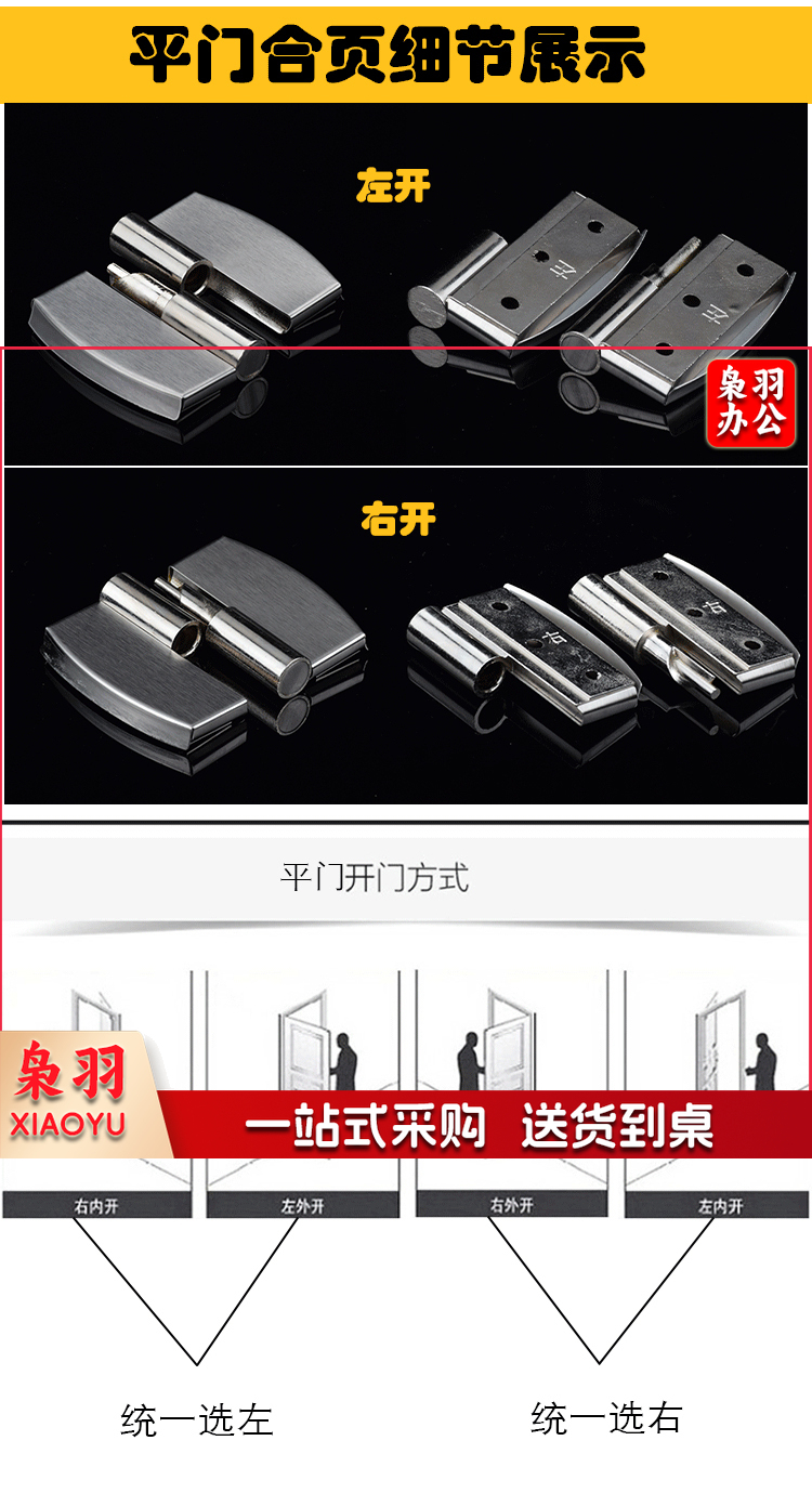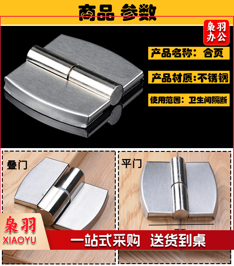 公共厕所卫生间隔断五金配件不锈钢自关闭合页升降平叠门铰链 平门加厚款(右外开)