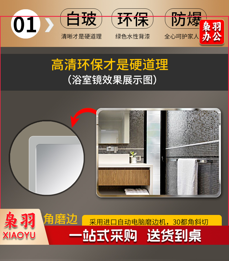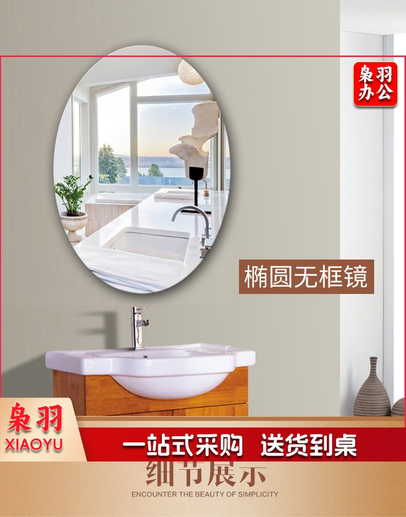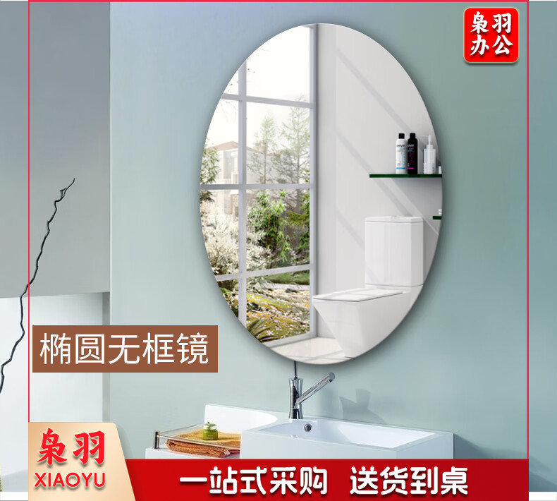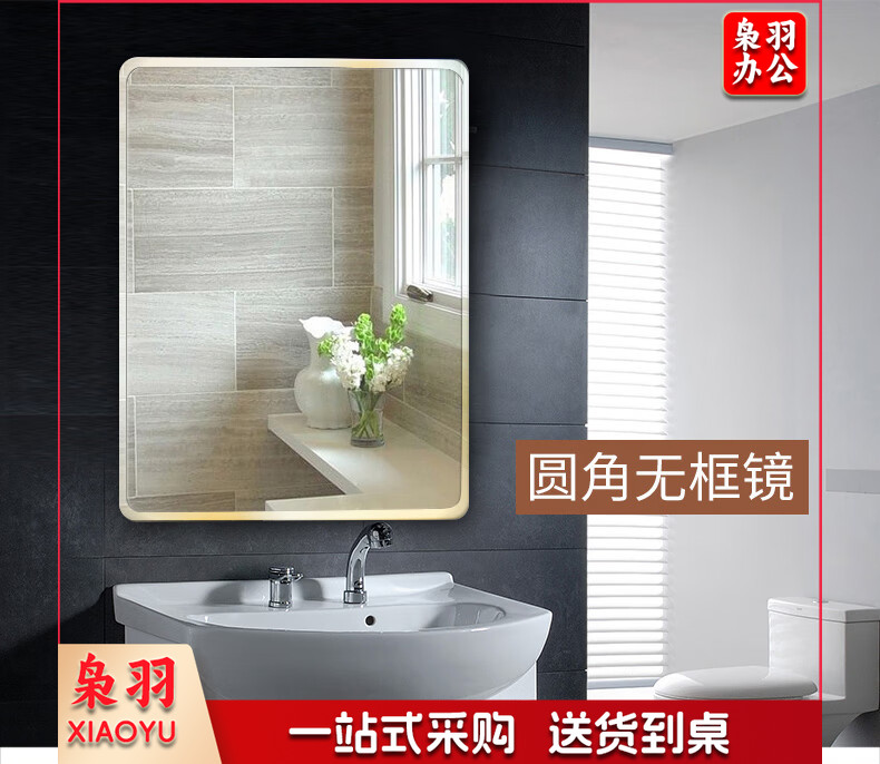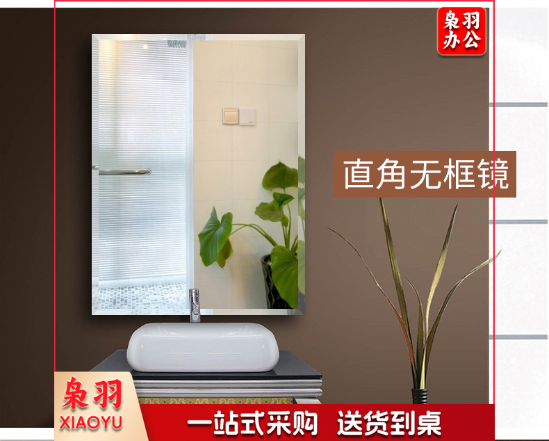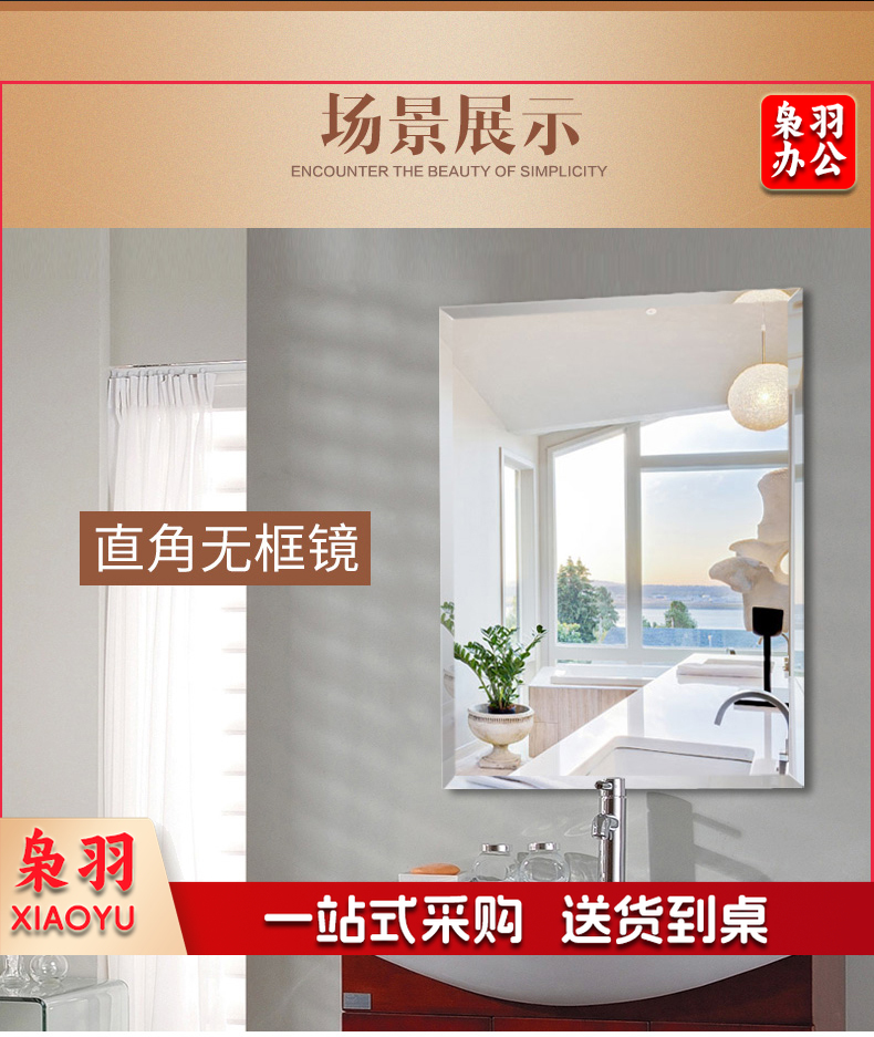 浴室镜子免打孔无框洗手间镜子贴墙卫浴镜穿衣镜壁挂镜子化妆镜 直角30*42(粘胶+免钉胶) 标准