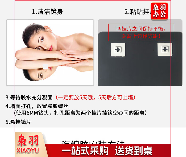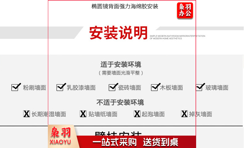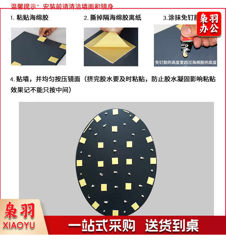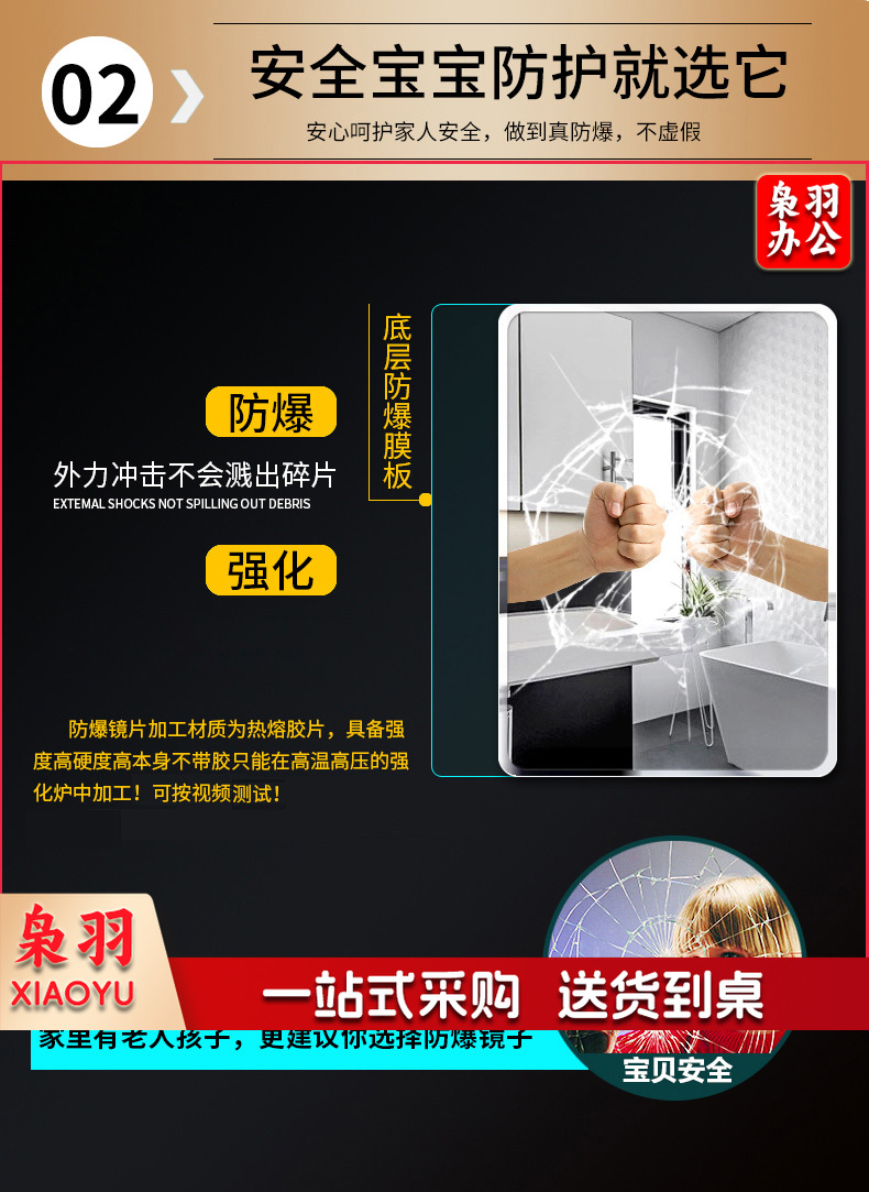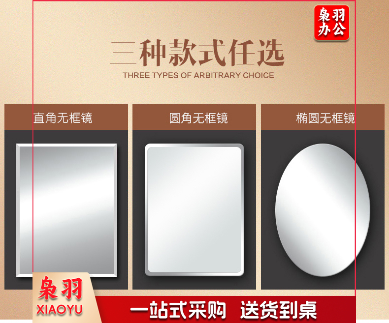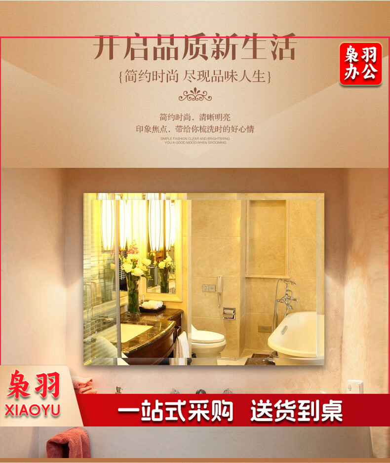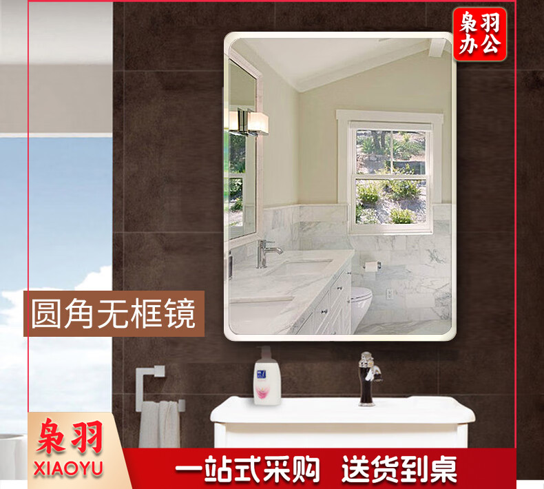 浴室镜子免打孔无框洗手间镜子贴墙卫浴镜穿衣镜壁挂镜子化妆镜 直角30*42(粘胶+免钉胶) 标准