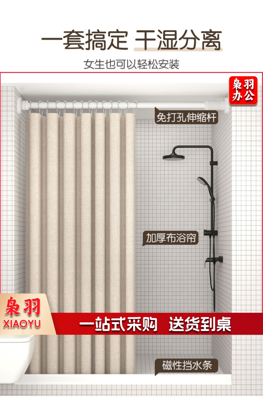 浴室浴帘磁吸套装免打孔卫生间洗澡防水布门帘窗帘隔断挡水挂帘子