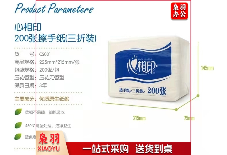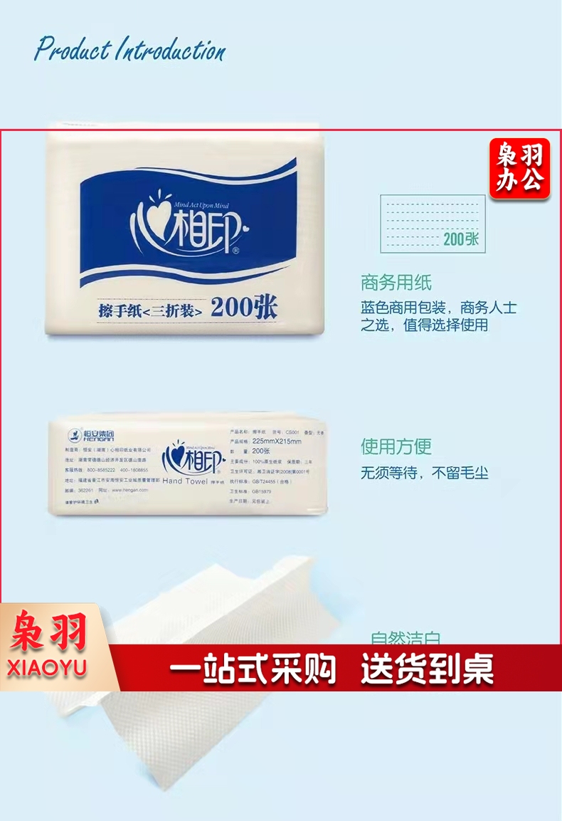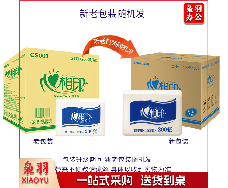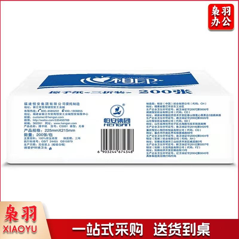 心相印擦手纸三折卫生间檫手纸吸水纸酒店商务厨房用纸200张/包20包 加厚擦手纸CS001