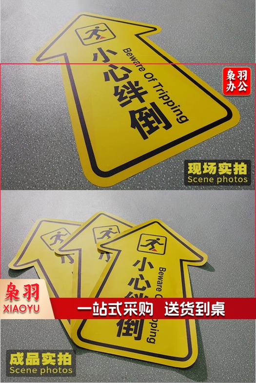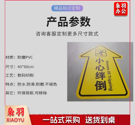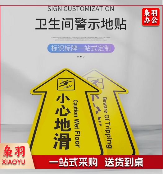 箭头提示地贴 40*60cm小心地滑 卫生间警示标识PVC材质 BYaf-578
