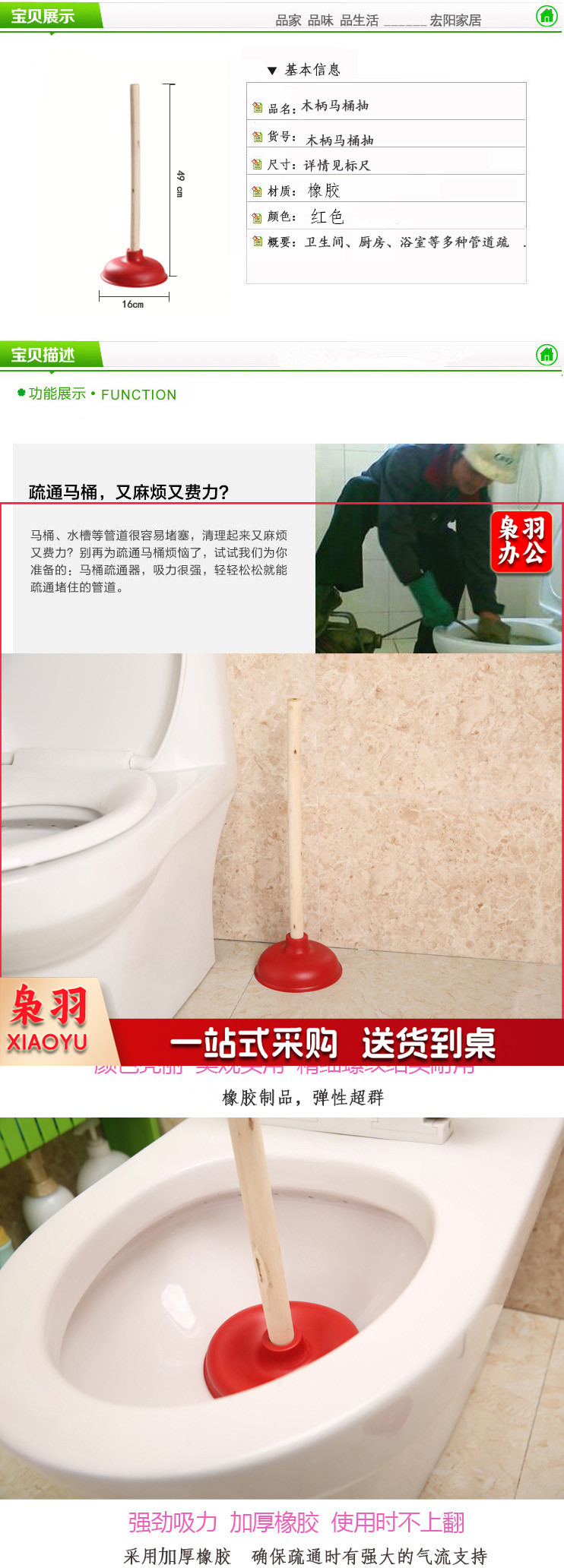 强力卫生间木柄马桶吸 管道疏通器 马桶抽子皮搋子 木把揣子