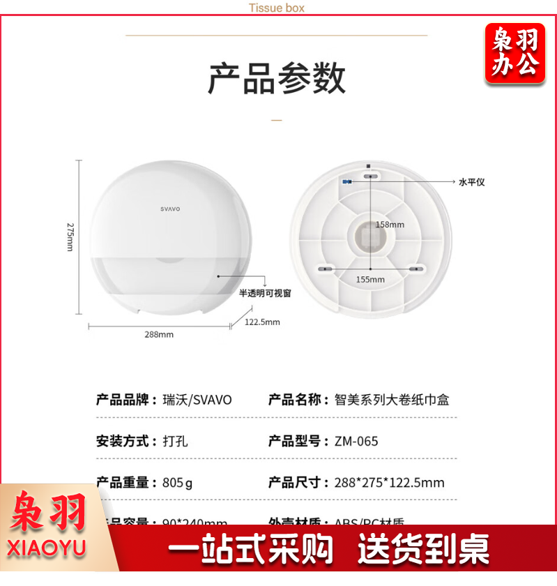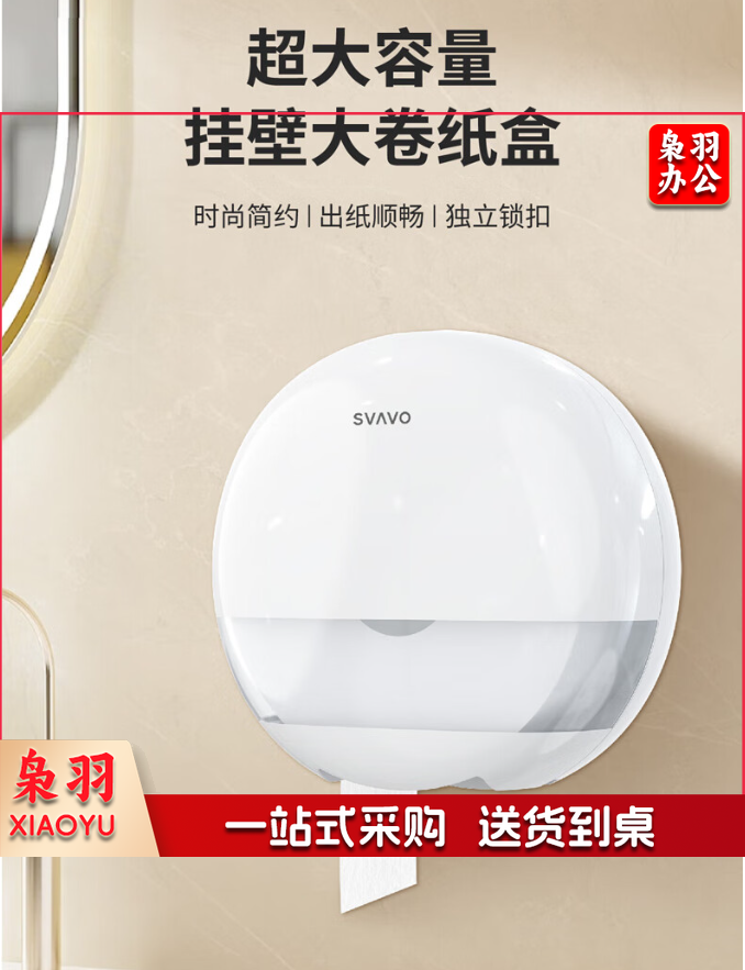 瑞沃(SVAVO)大卷纸盒卫生间纸巾盒壁挂式卷纸盒大盘纸盒酒店防水厕纸盒 ZM-065白+茶色 纸巾盒