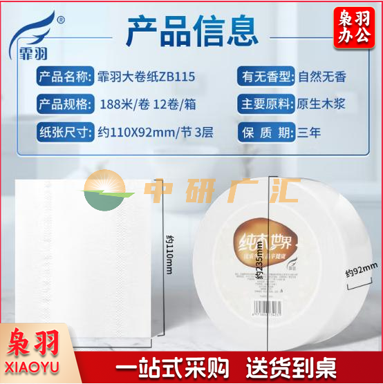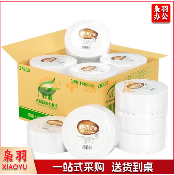 霏羽有芯大卷纸3层188米*12卷商用大盘纸卷筒纸卫生纸酒店卫生间ZB115