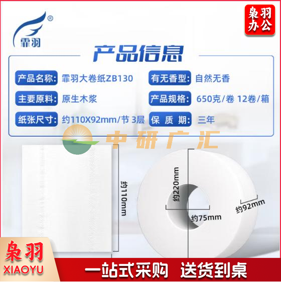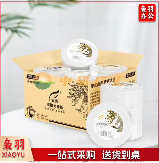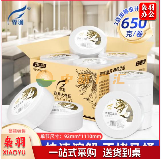 霏羽商用卷纸大盘纸3层650克12卷酒店宾馆卫生间厕所厕纸卫生纸ZB130