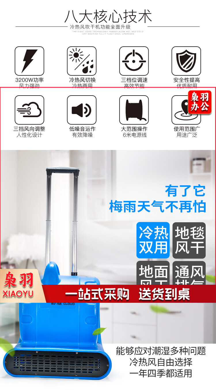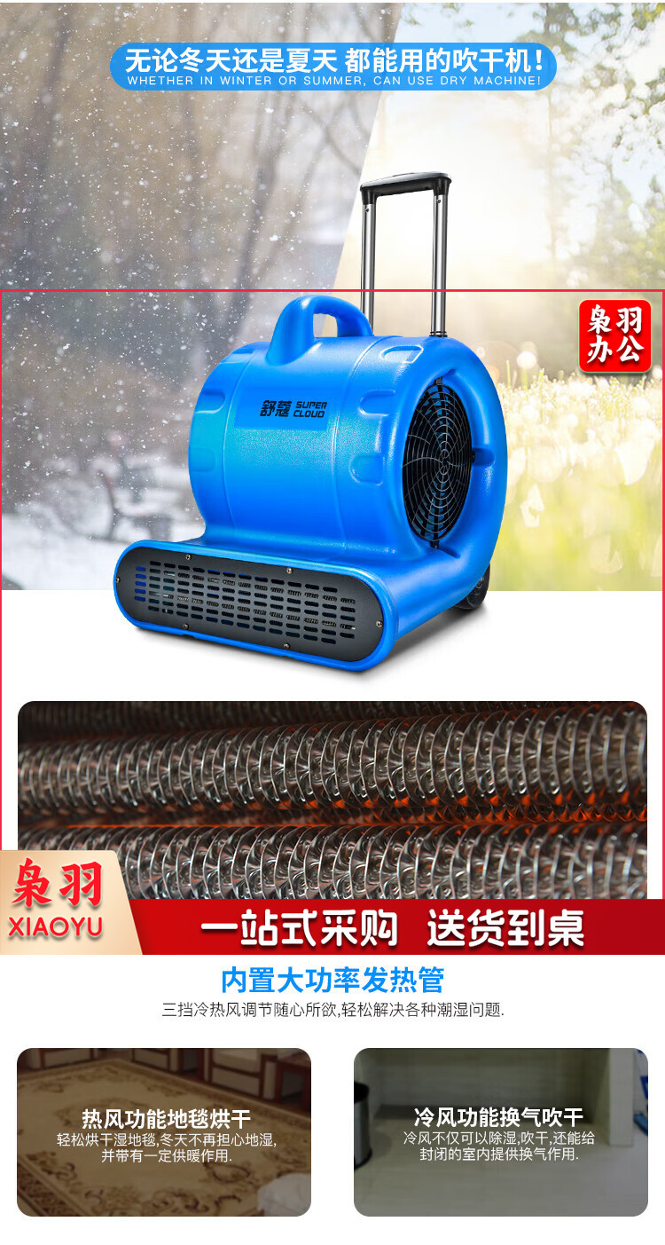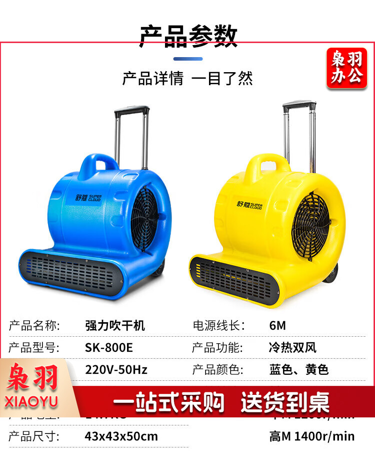 舒蔻(Supercloud)冷热双用吹地机吹干机地面烘干机厕所大功率地板风干机卫生间酒店地毯除湿 SK-800E黄