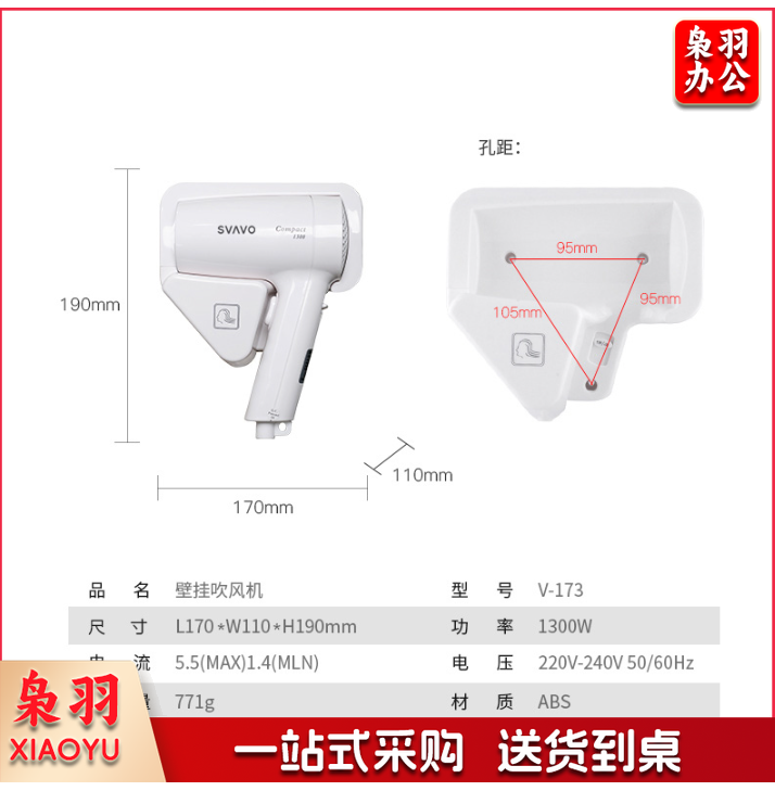 瑞沃 吹风筒 宾馆浴室卫生间干发器挂壁吹风机 白色 单位:台 V-173