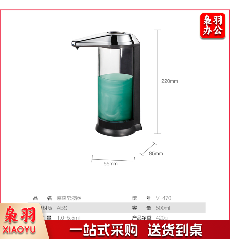 瑞沃 感应器 壁挂式卫生间自动洗手液盒 给皂器 皂液盒 单格 500ml 单位:台 V-470铬色