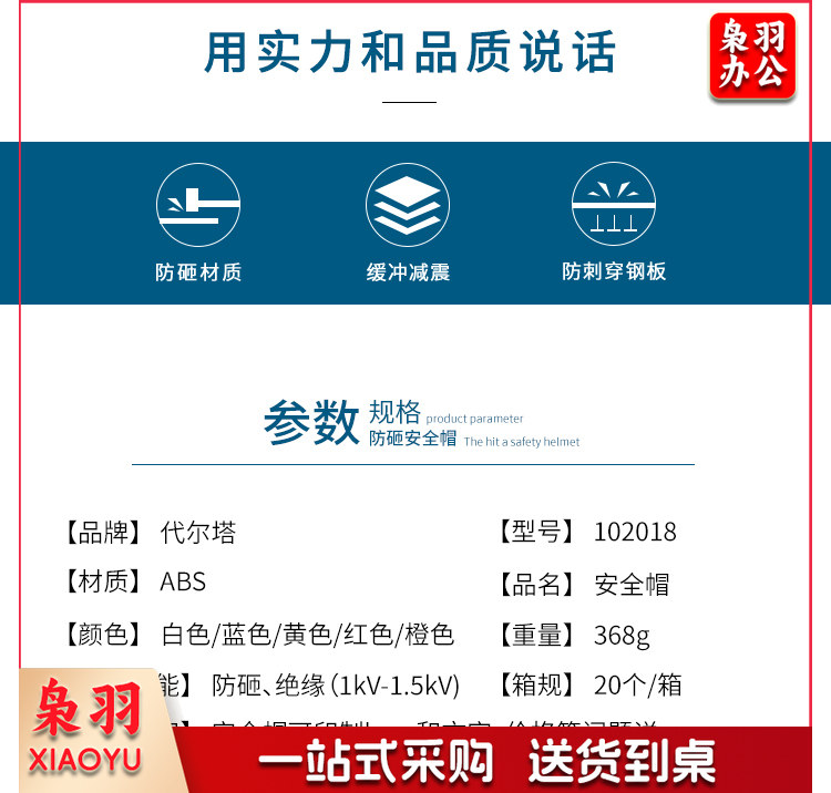 代尔塔 102018 安全帽 建筑工地工程绝缘安全帽 ABS材质无通气孔