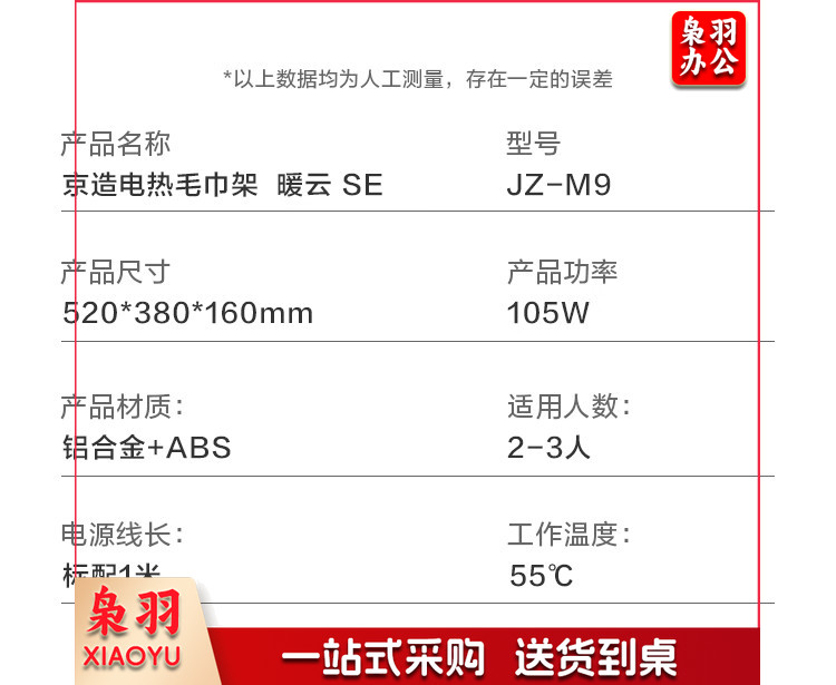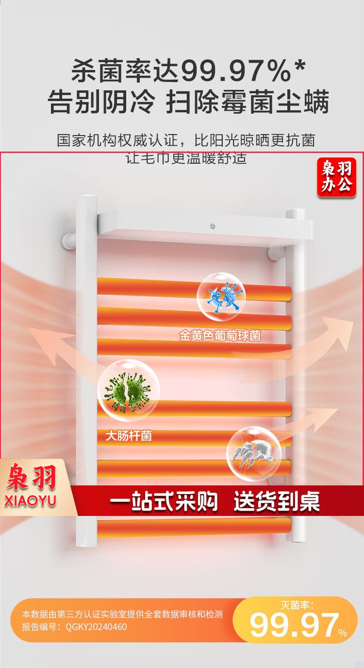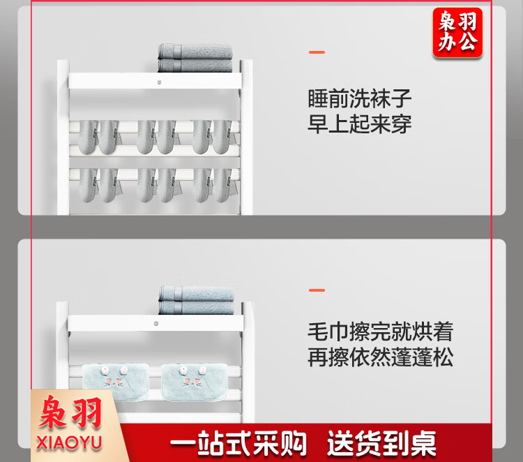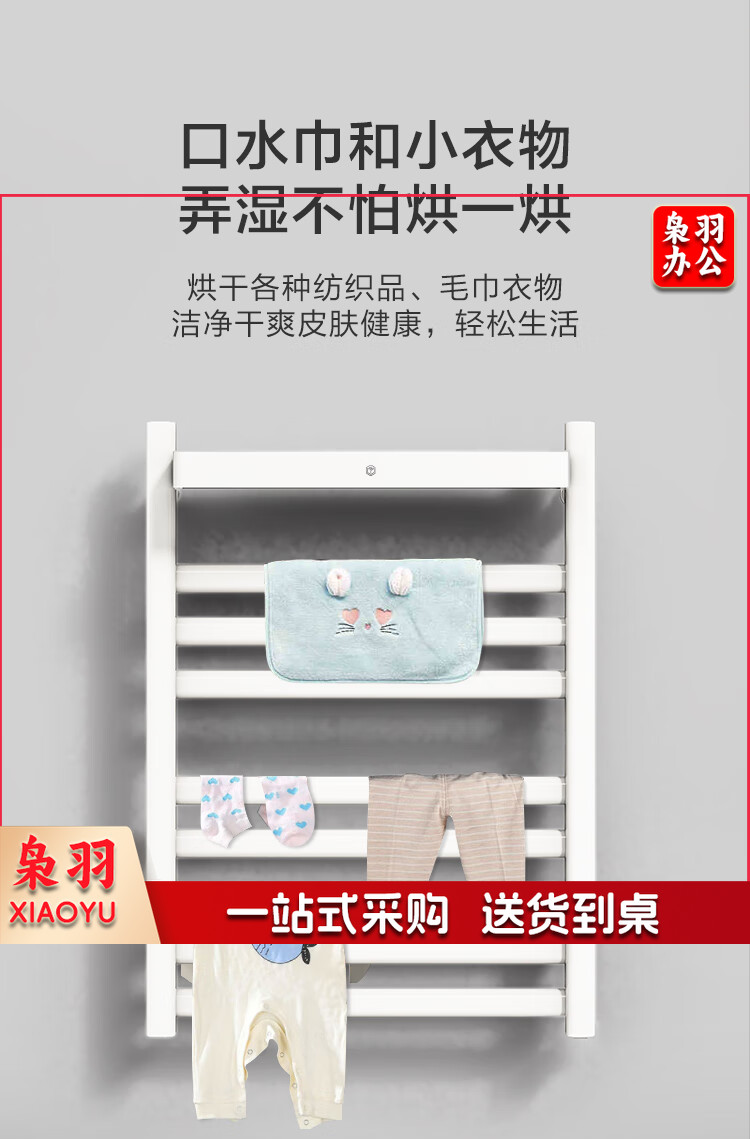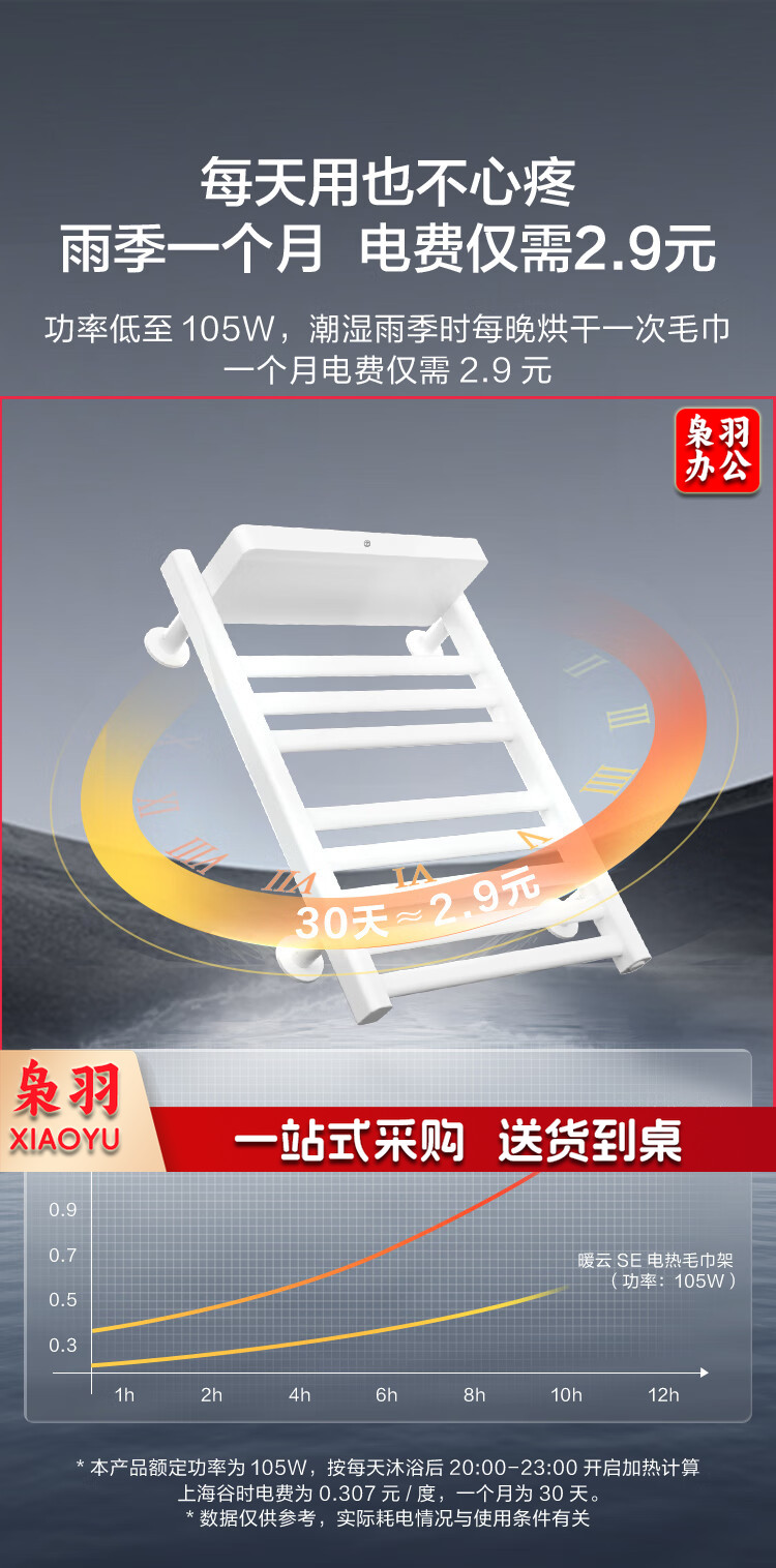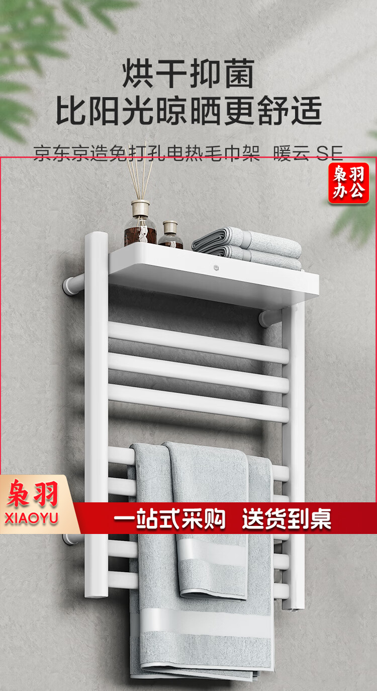 京东京造暖云SE免打孔电热毛巾架 碳纤维加热 卫生间烘干置物架 柔雾白