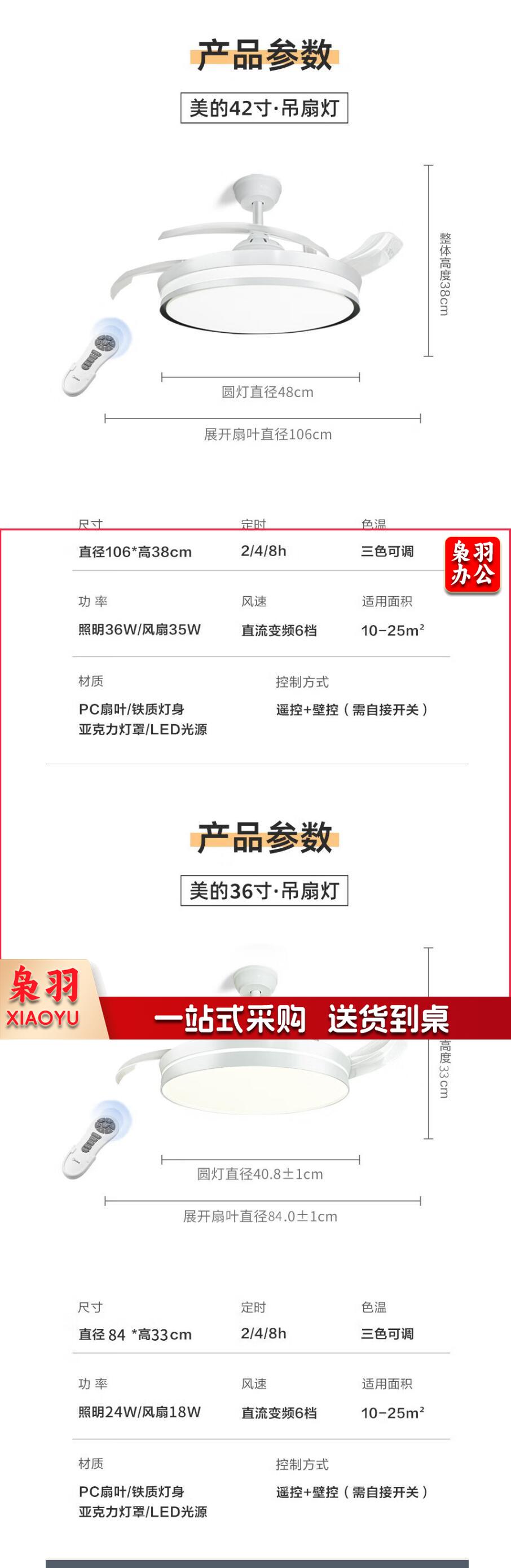 美的(Midea) 吊扇灯 餐厅隐形风扇 电扇灯遥控大风量LED风扇吊灯 FC105EERL 42寸遥控+三档调光+6档风速