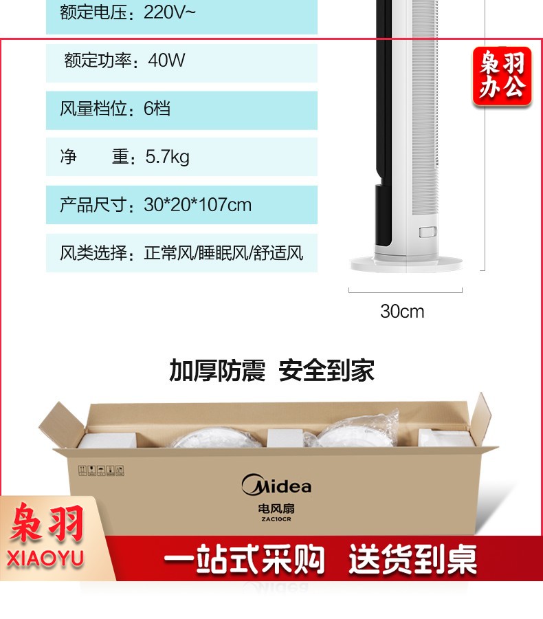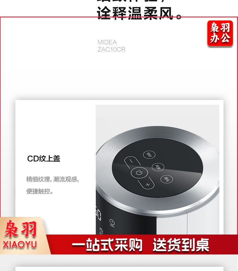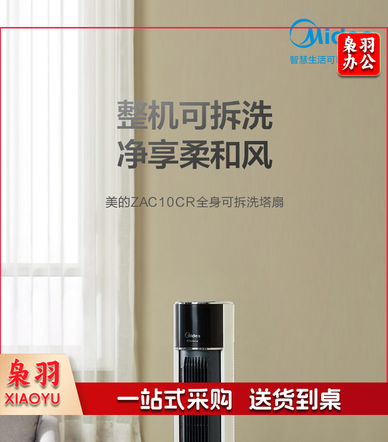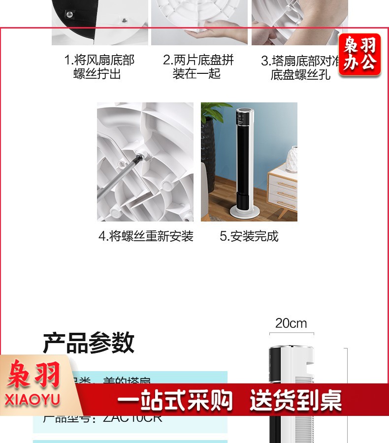 美的(Midea)无叶电风扇内旋摇头塔扇立式遥控轻音低噪全拆洗卧室客厅办公室触摸屏柔风ZAC10CR