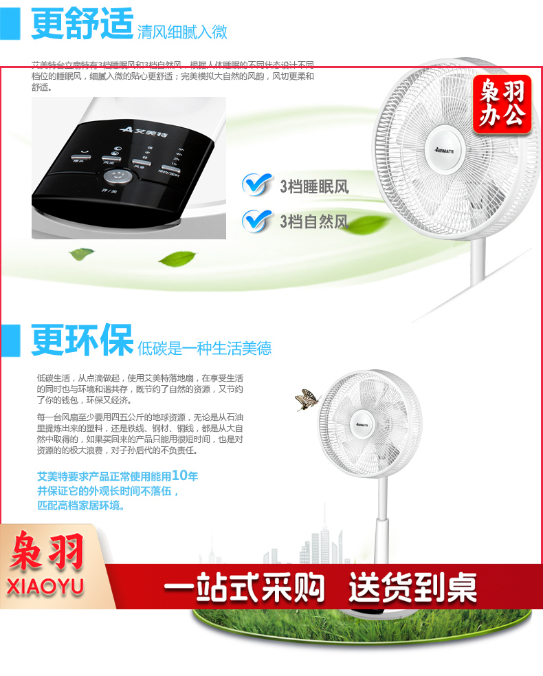 艾美特电风扇台立扇落地扇静音转页定时摇头S30193HT2