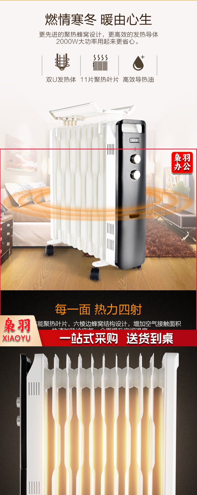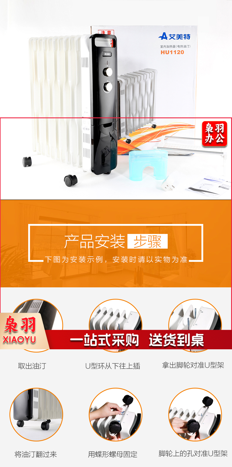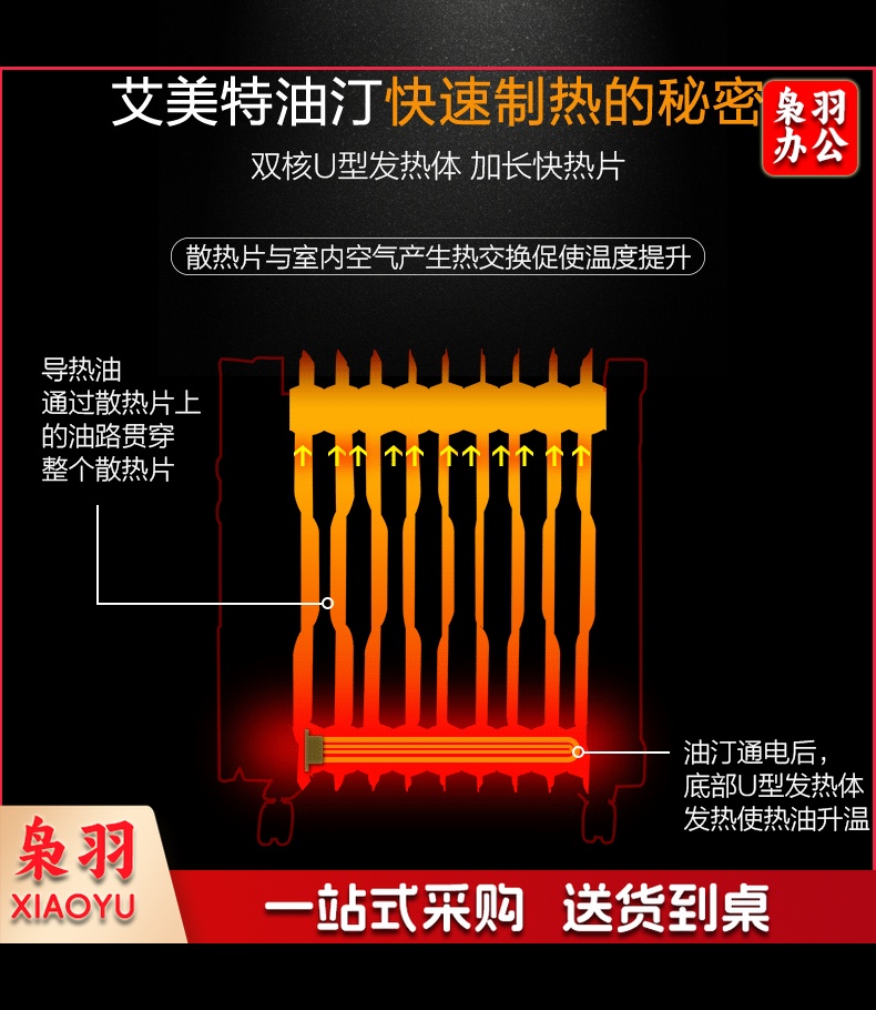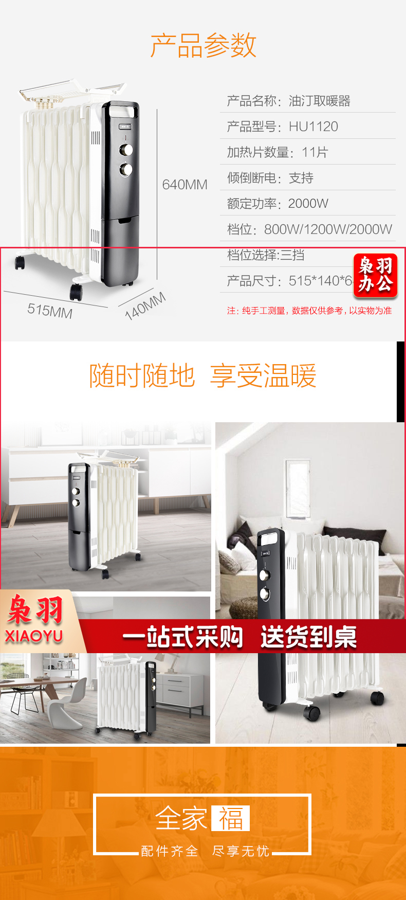 艾美特(AIRMATE)11片 HU1120油汀取暖器 三档调温办公室节能省电