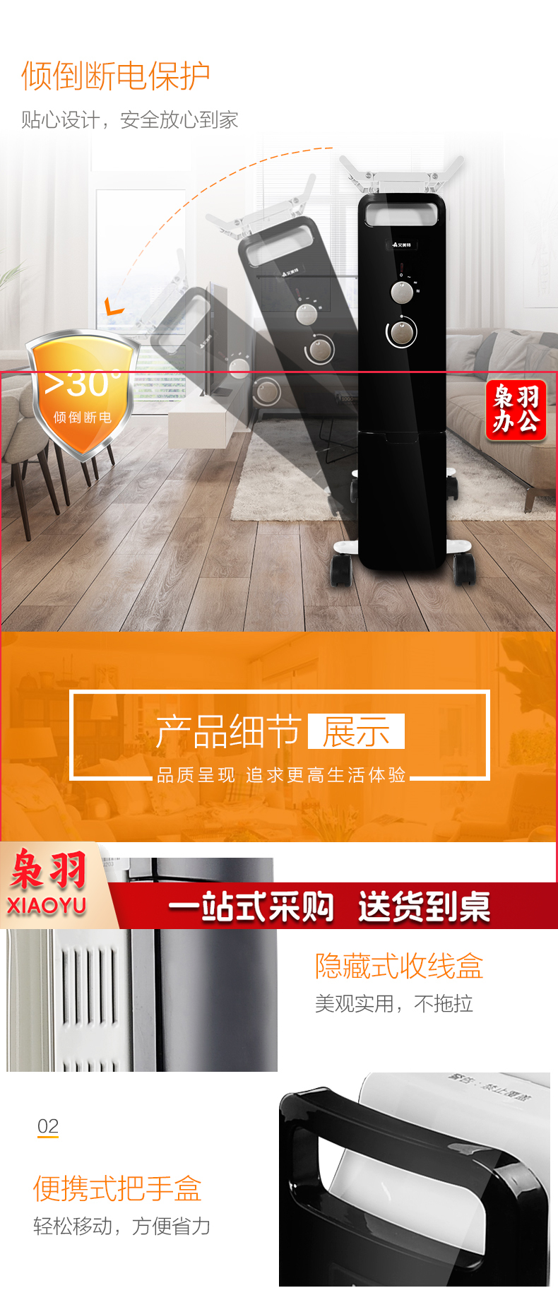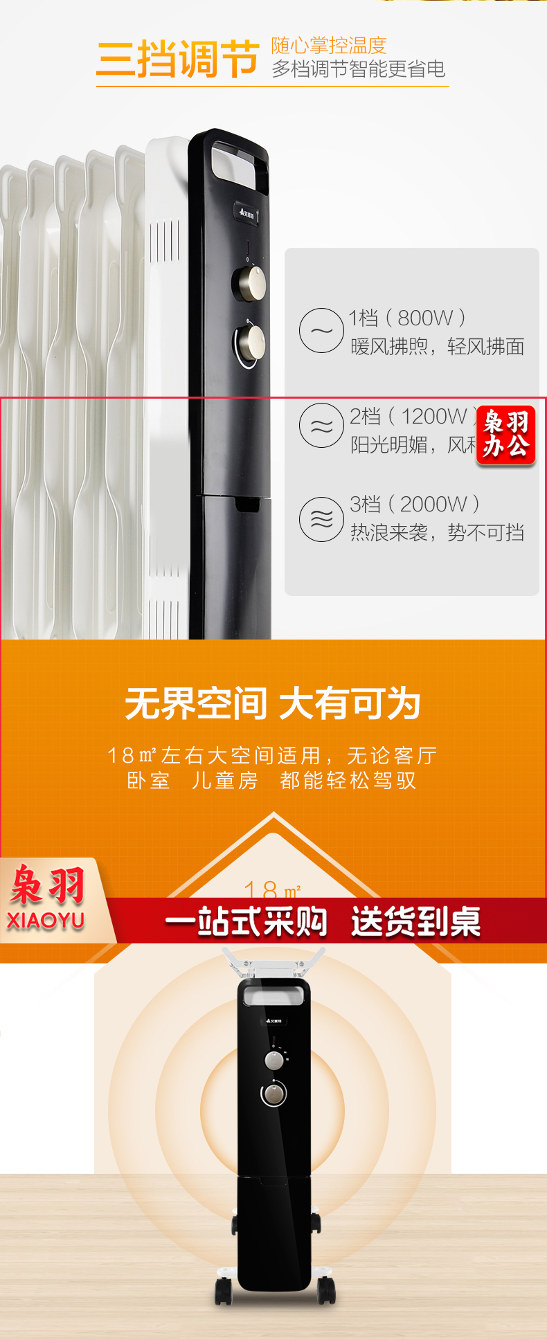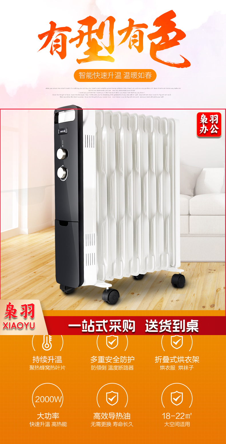 艾美特(AIRMATE)11片 HU1120油汀取暖器 三档调温办公室节能省电