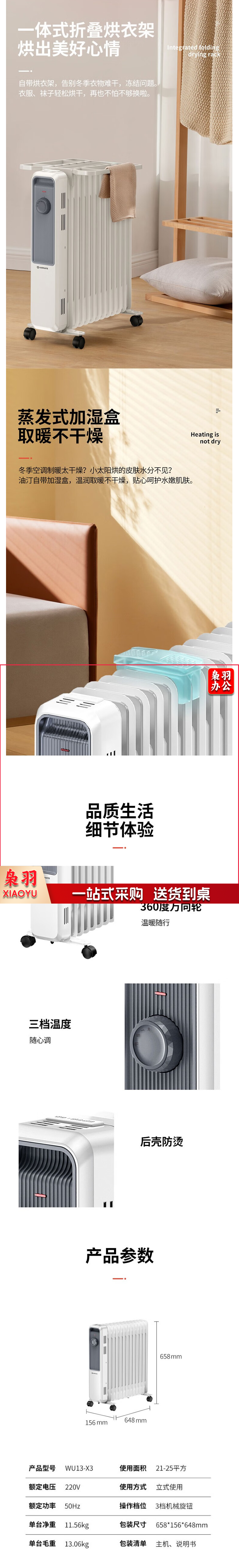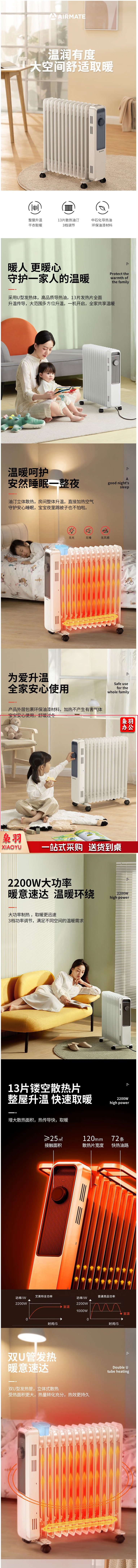 艾美特(AIRMATE)WU13-X3 取暖器家用13片电暖器节能电暖气油汀暖气片电油汀
