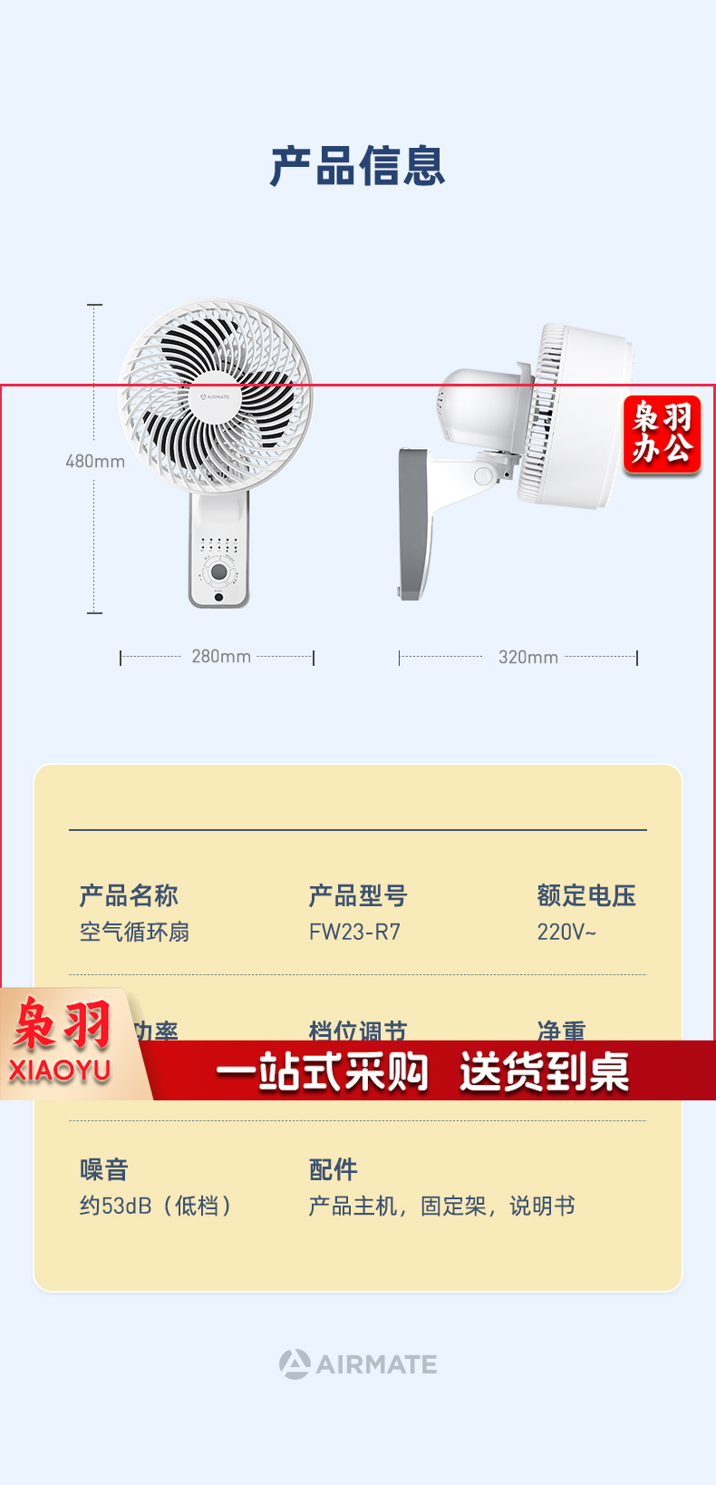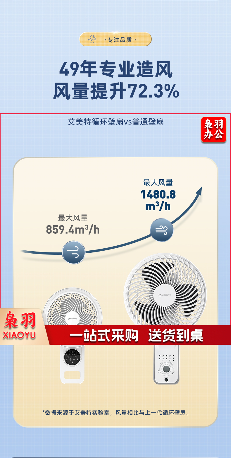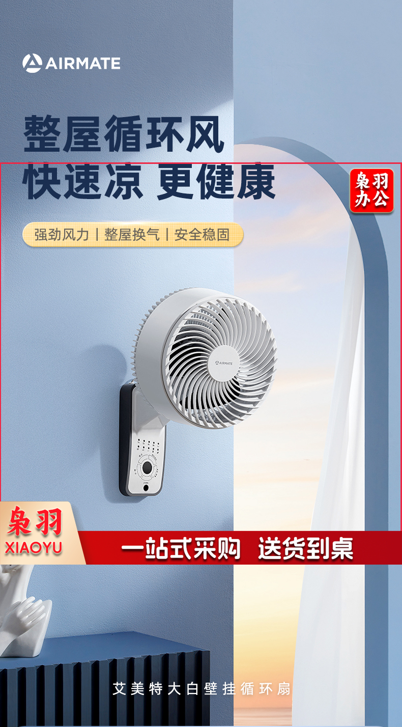 艾美特(AIRMATE) FW23-R7 循环壁扇壁挂电风扇 家用商用挂壁式挂墙式遥控空气循环扇 大风量宿舍餐厅风扇
