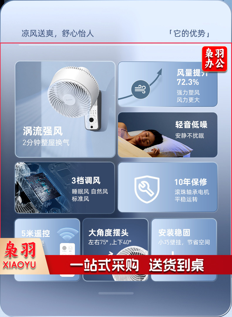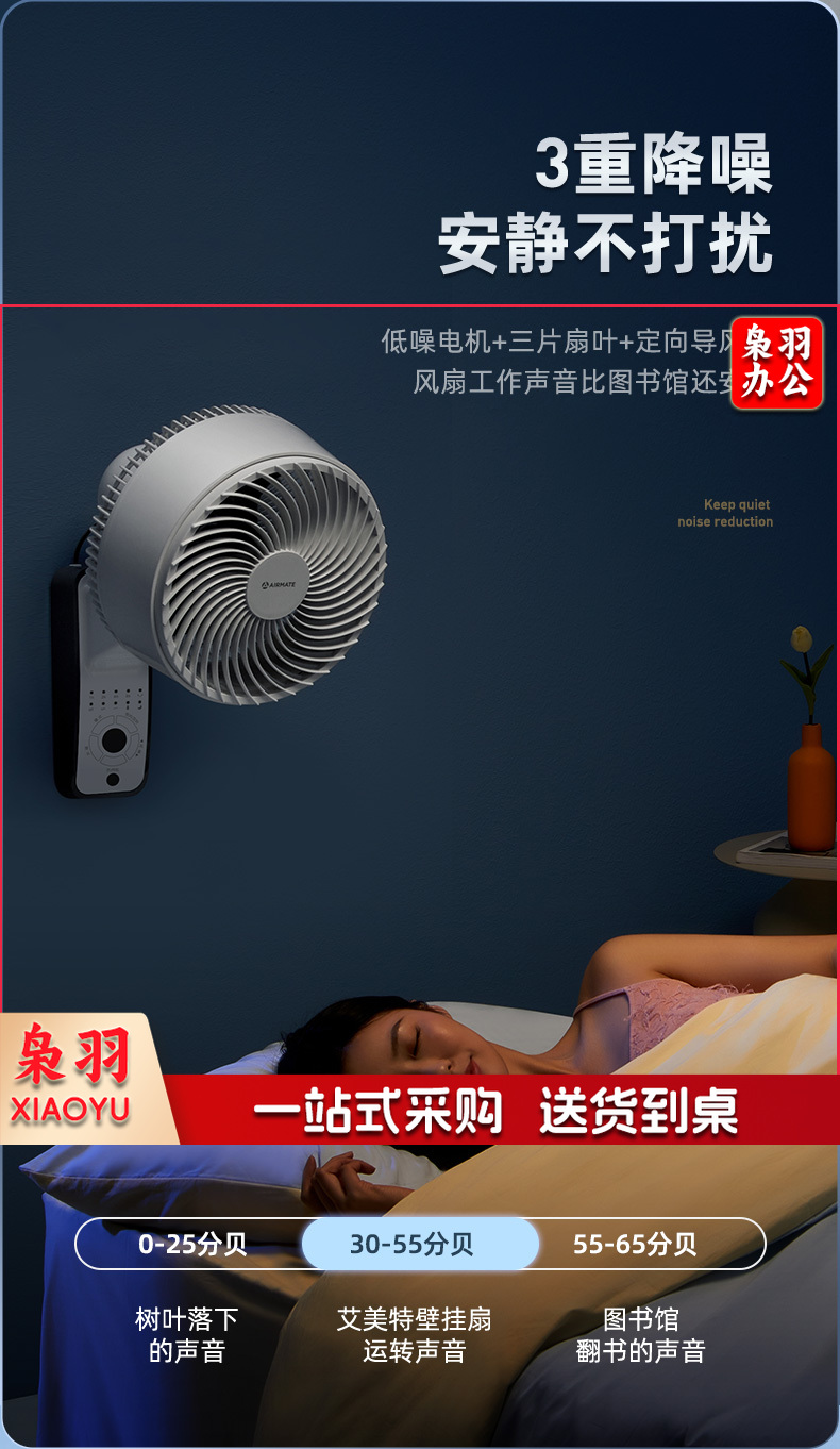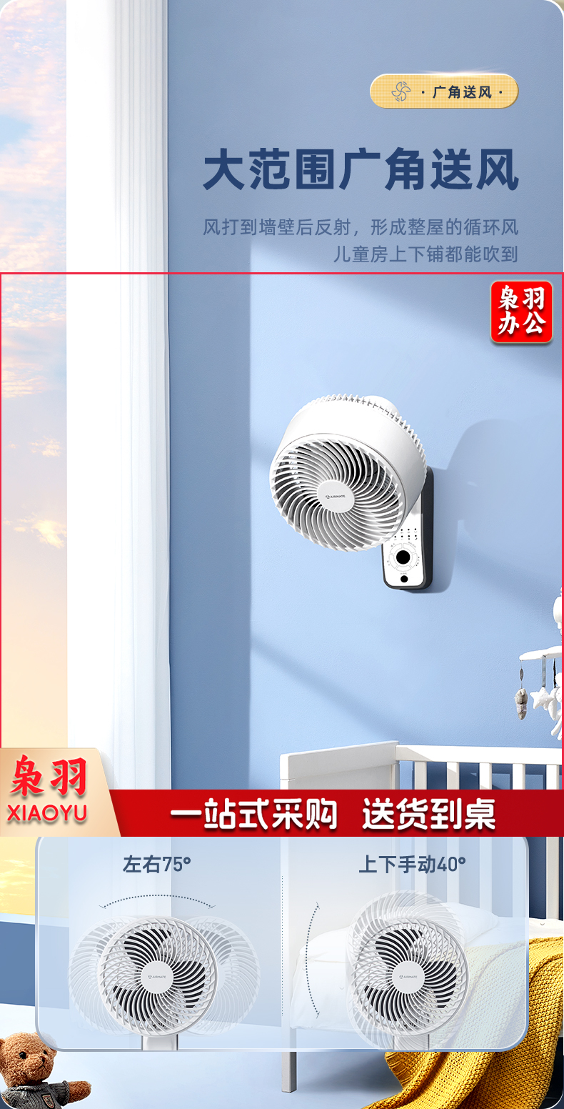 艾美特(AIRMATE) FW23-R7 循环壁扇壁挂电风扇 家用商用挂壁式挂墙式遥控空气循环扇 大风量宿舍餐厅风扇