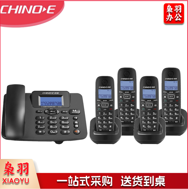 中诺数字无绳电话机无线座机子母机一拖四套装内线通话一键拨号固定电话W128黑色