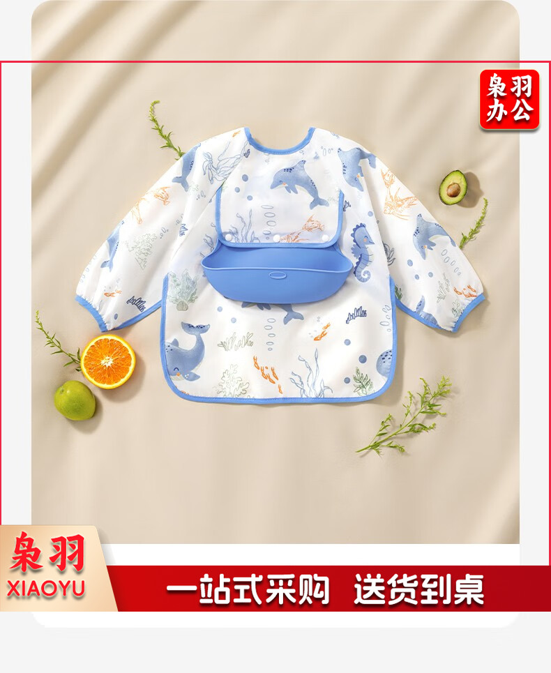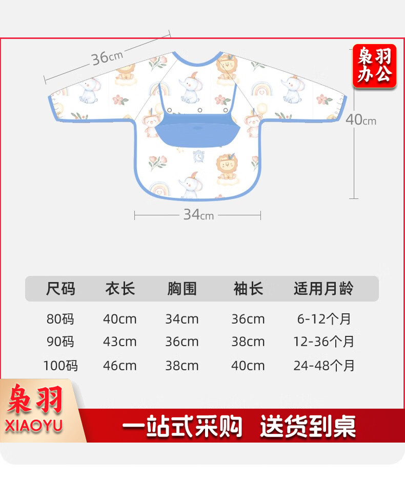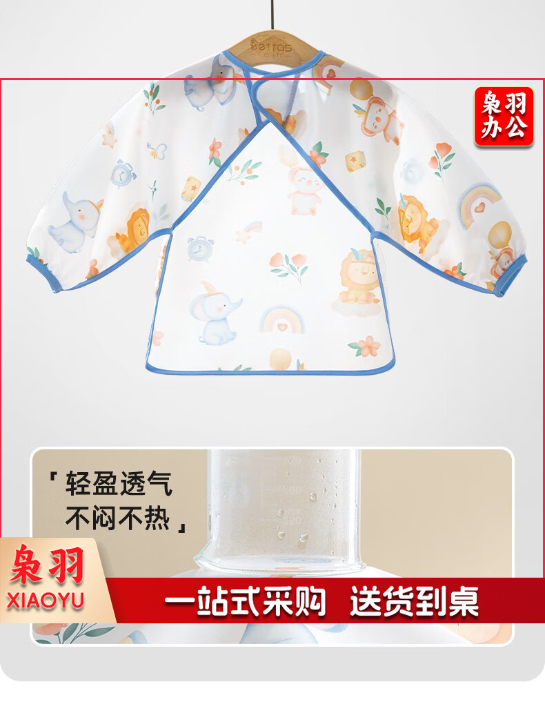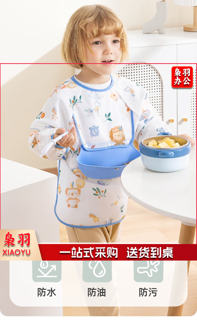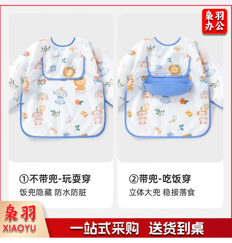 婴儿吃饭围兜宝宝食饭兜防水防脏罩衣儿童辅食幼儿园反穿衣 海之微笑【可拆卸3D立体兜】 80码(0-1岁 适合身高70-80cm)