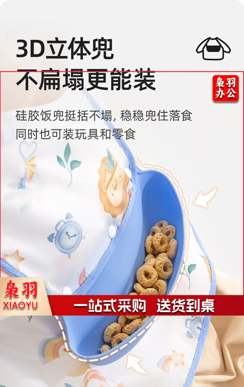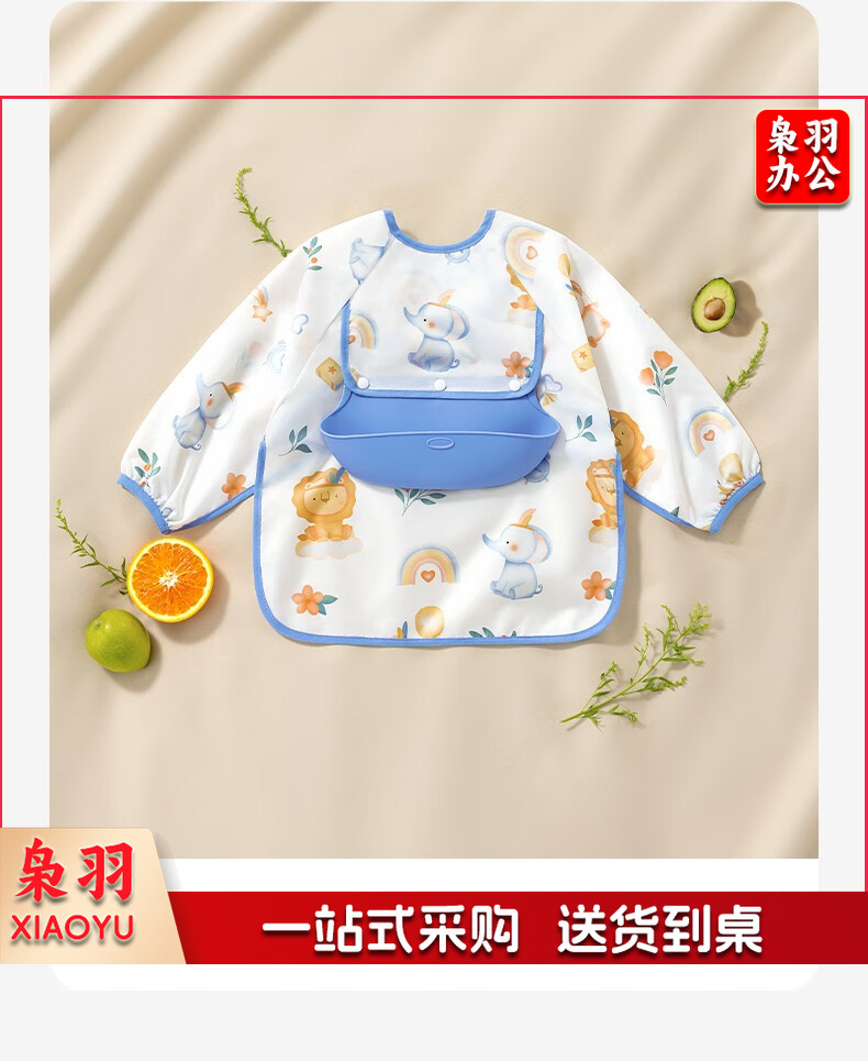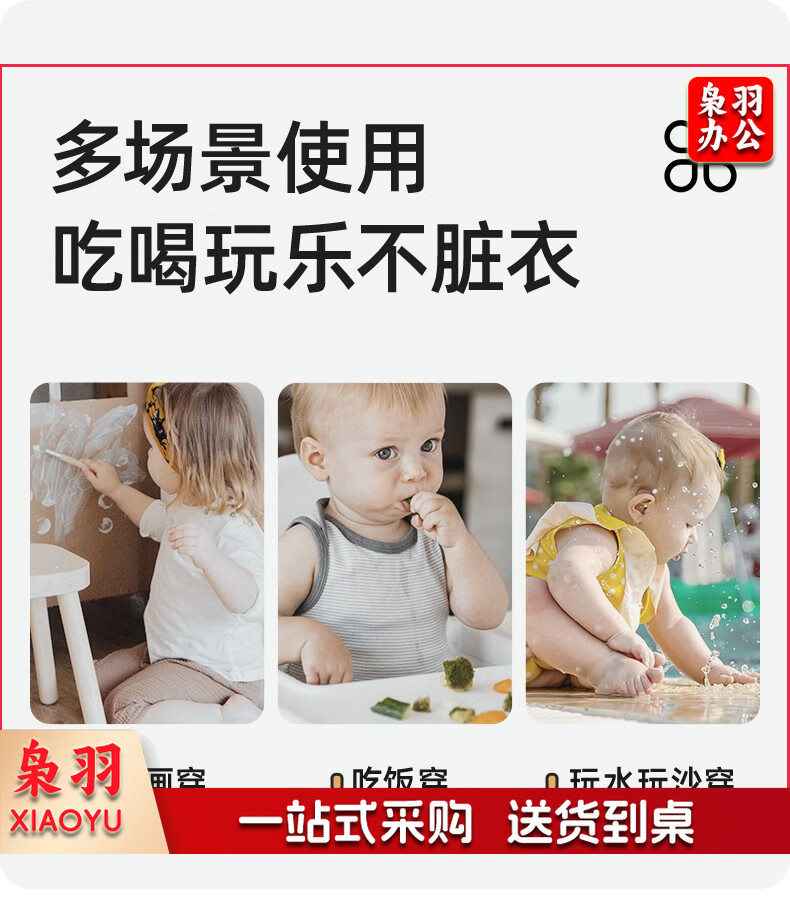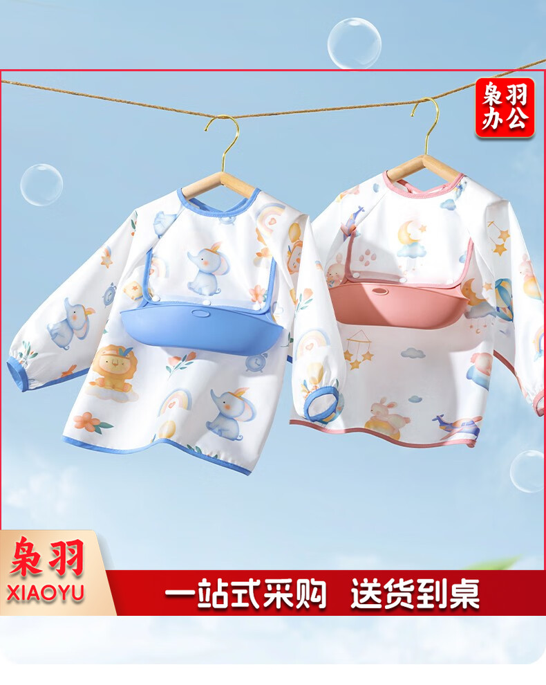 婴儿吃饭围兜宝宝食饭兜防水防脏罩衣儿童辅食幼儿园反穿衣 海之微笑【可拆卸3D立体兜】 80码(0-1岁 适合身高70-80cm)