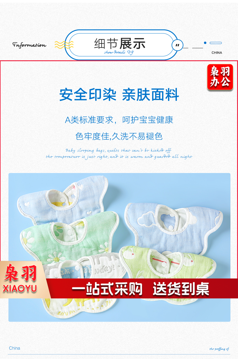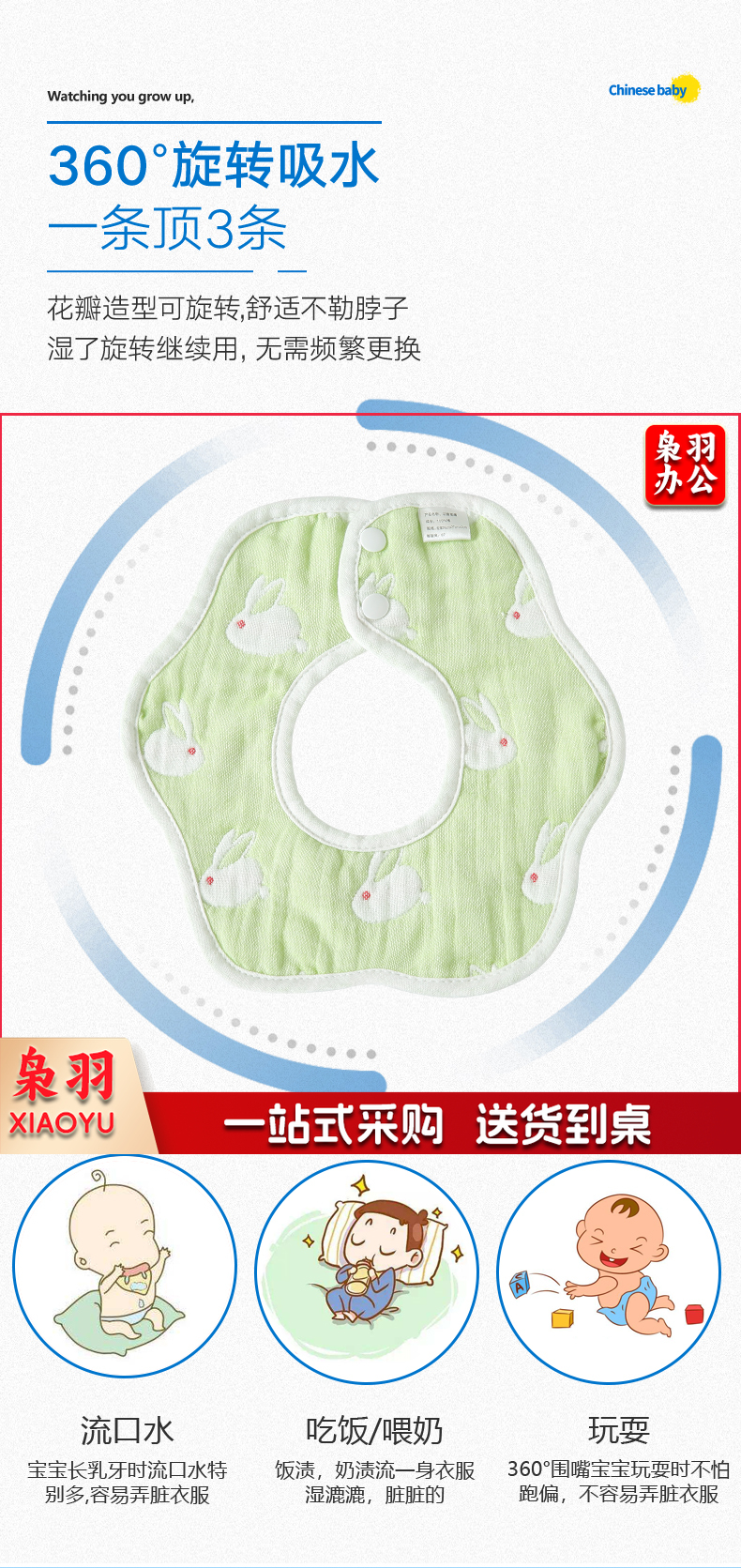 婴儿口水巾5条装宝宝围嘴围脖6层纱布口水兜围兜儿童饭兜吐奶垫巾